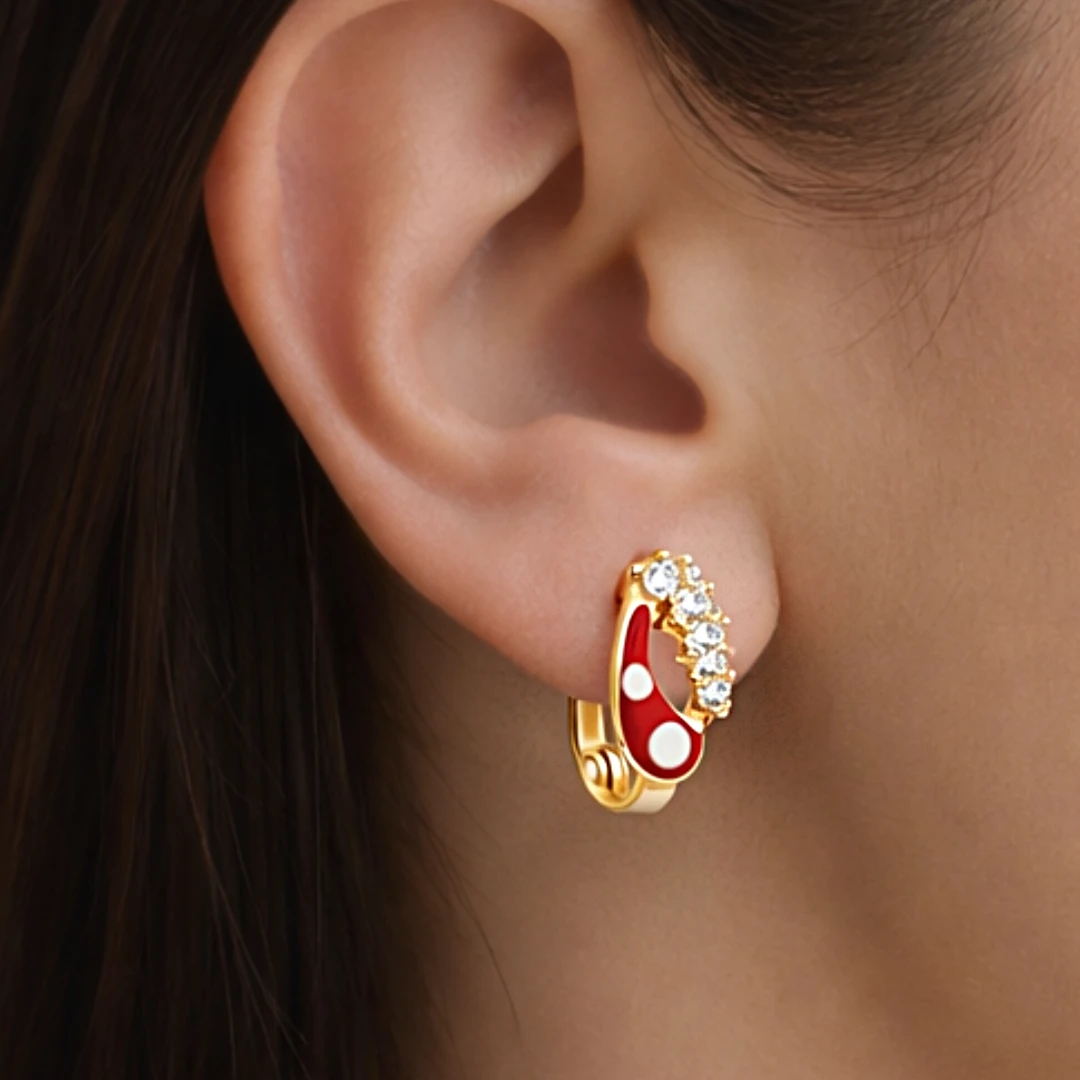 - Czerwona emalia: nadaje kolczykom wyrazisty, radosny akcent i wyróżnia je na tle klasycznych modeli.