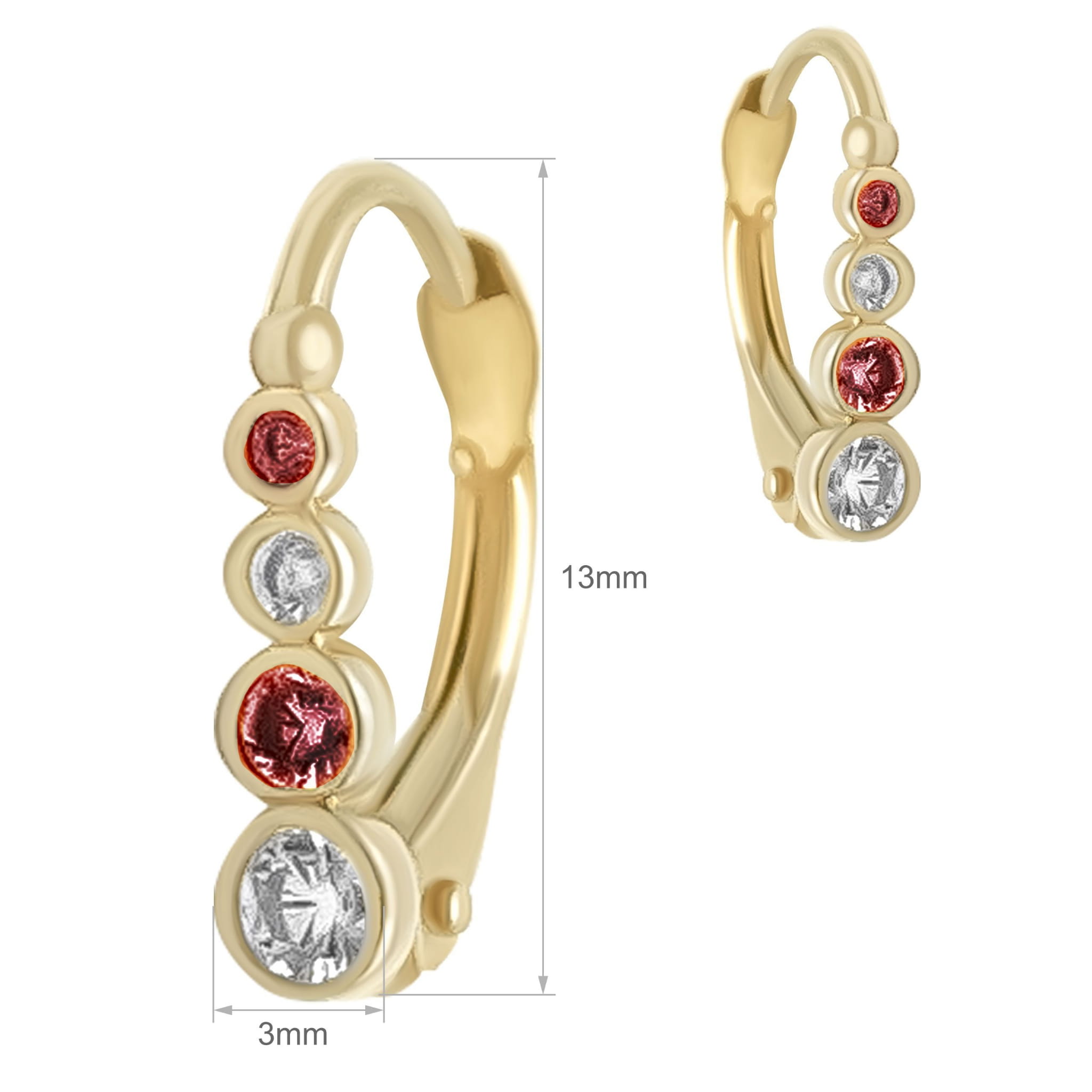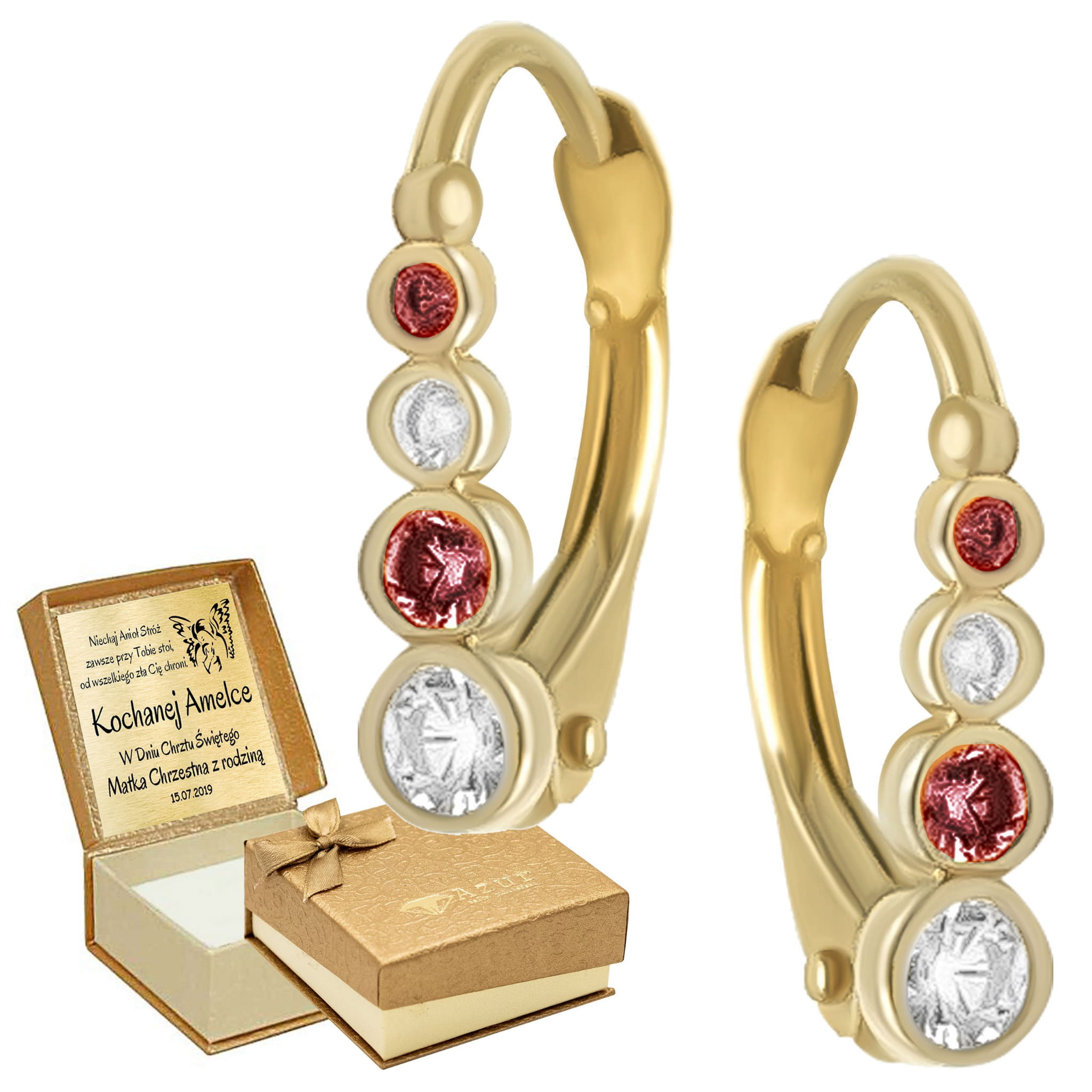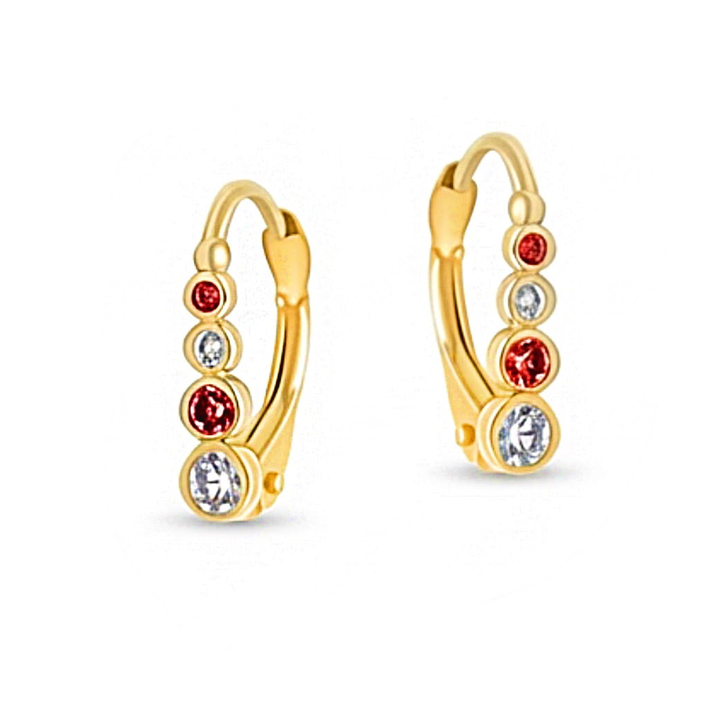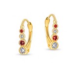 Złote kolczyki z czerwonymi i białymi cyrkoniami
