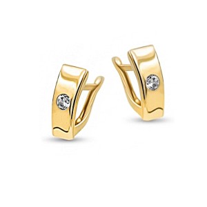 Eleganckie złote kolczyki z subtelną cyrkonią to idealny wybór dla kobiet ceniących klasyczny styl z nutą nowoczesności. Cyrkonia, osadzona w delikatnym złotym wzorze, pięknie odbija światło, dodając blasku każdej stylizacji.