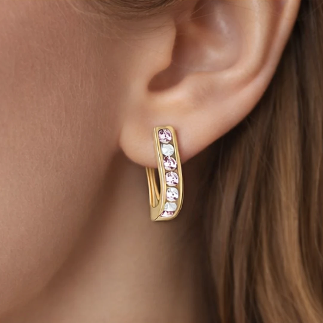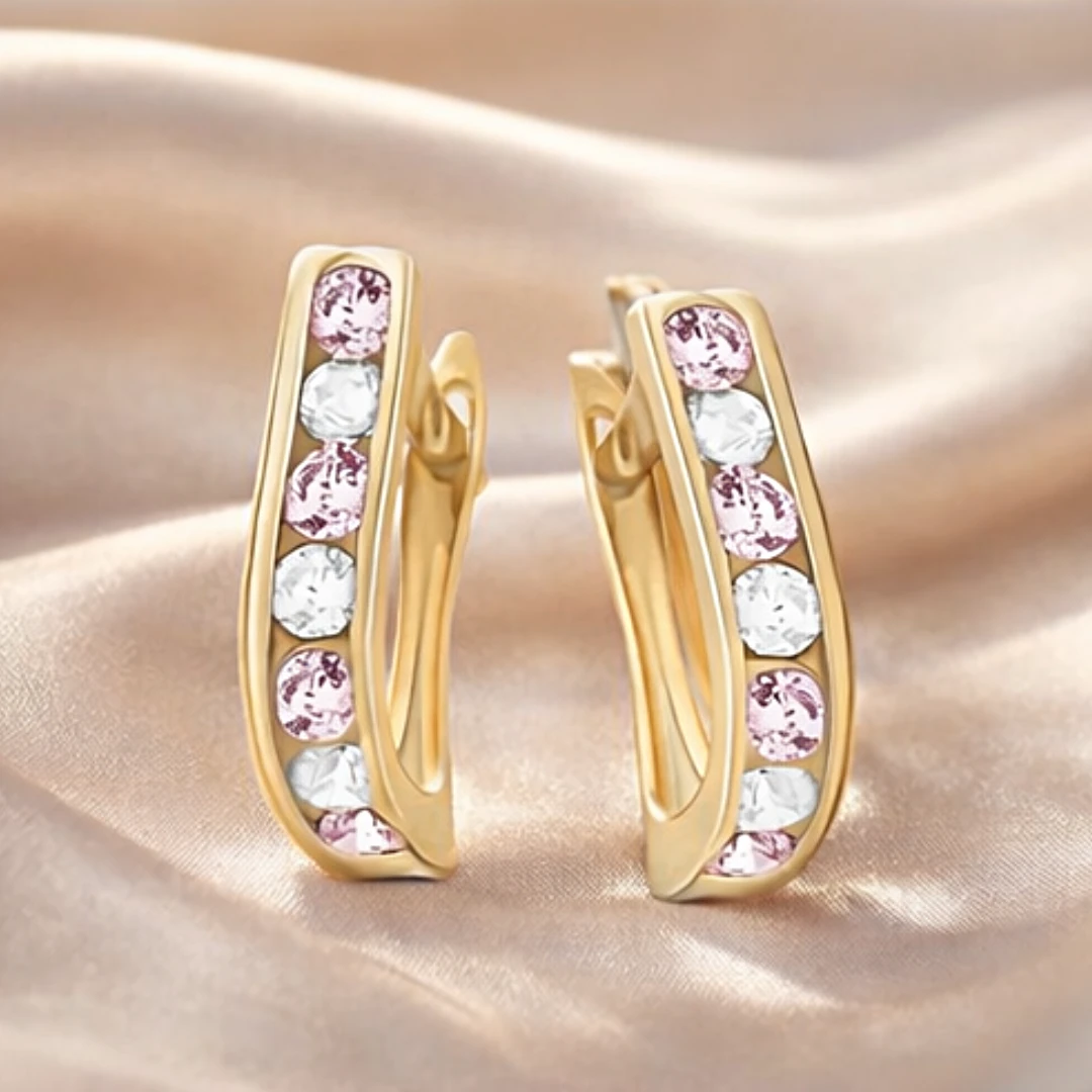 Złote Kolczyki z Różowymi i Białymi Kamieniami – delikatny kolor i elegancki blask