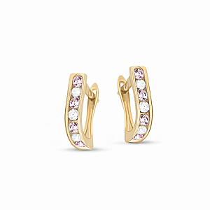 Złote Kolczyki z Różowymi i Białymi Kamieniami