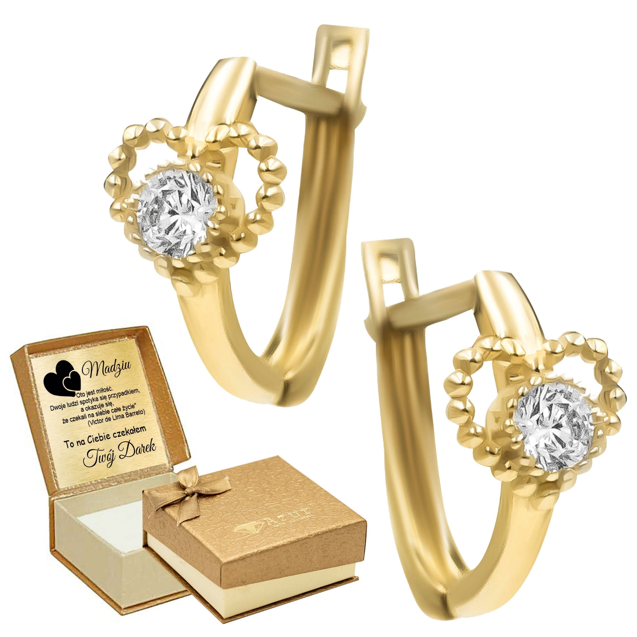 Pozłacane srebrne kolczyki z białymi cyrkoniami – biżuteria z grawerem