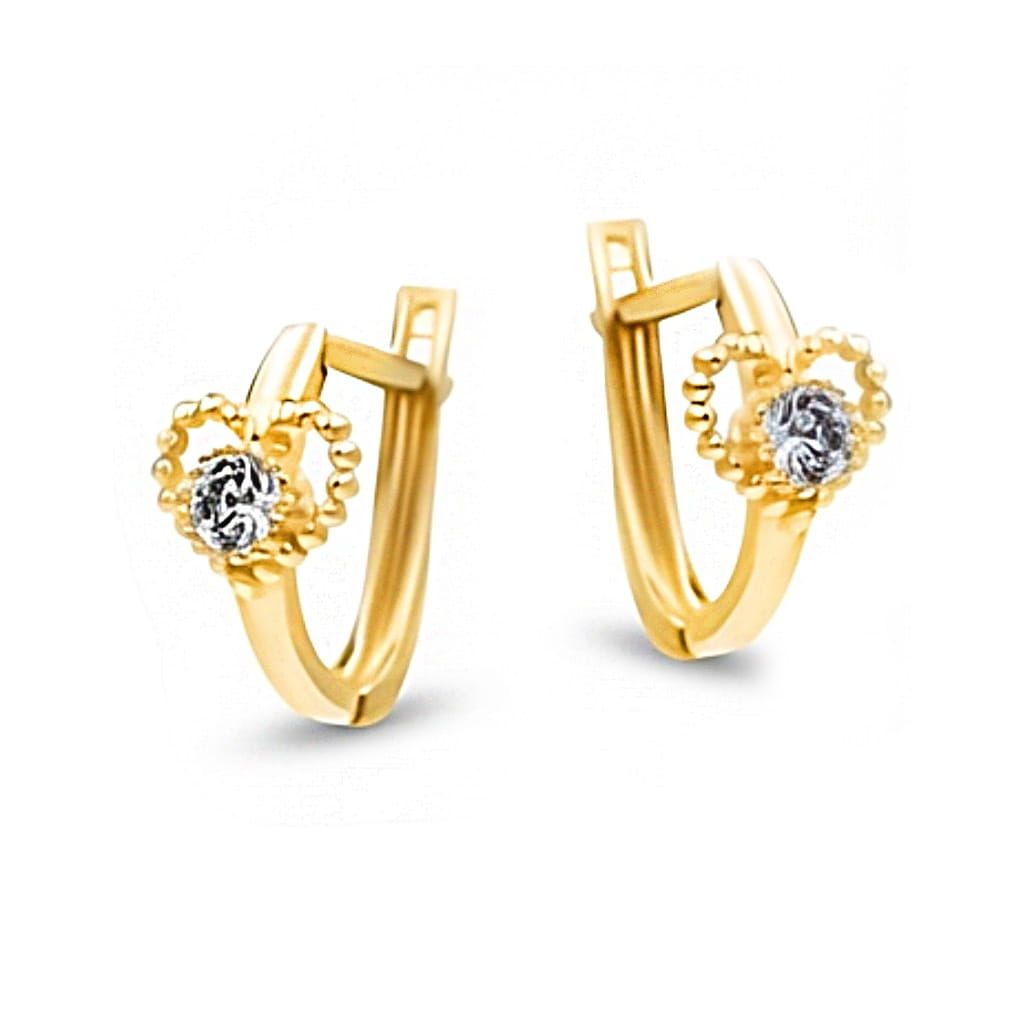 Złote Kolczyki "Połyskujące Serce" – Eleganckie Kolczyki z Cyrkoniami