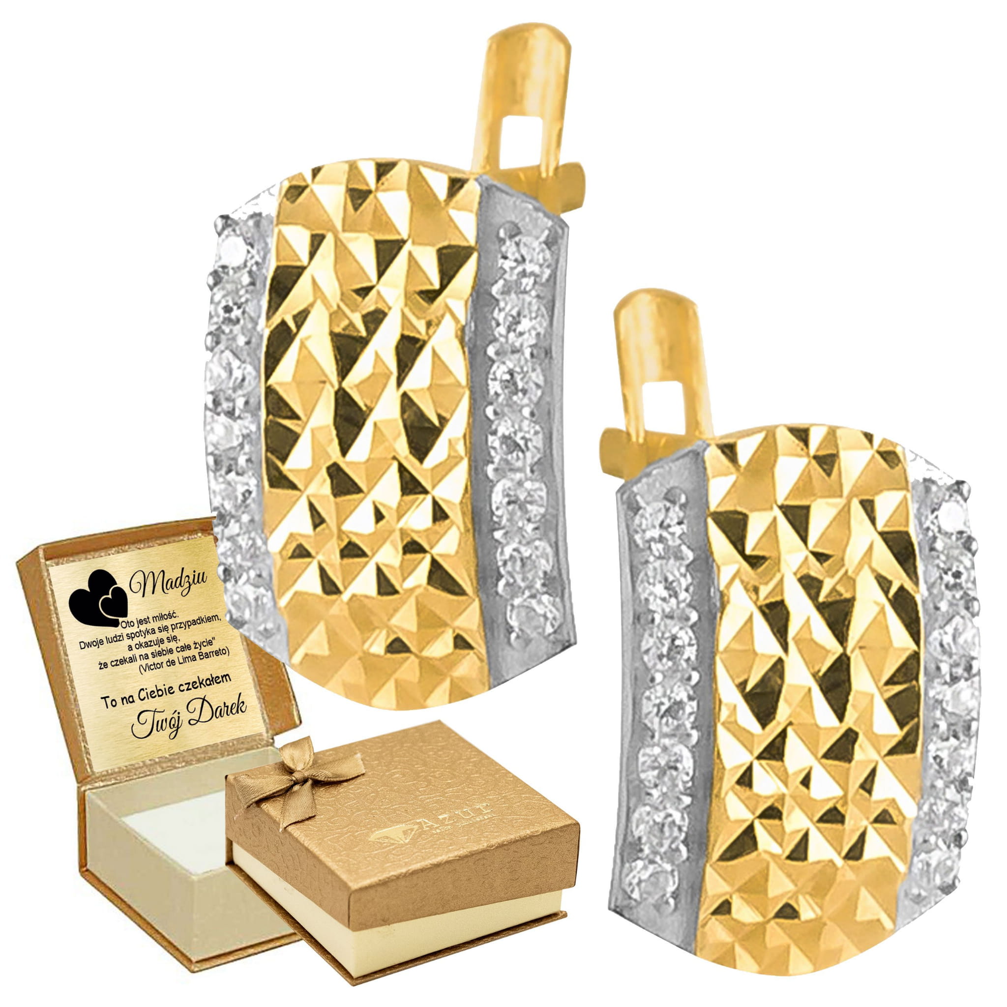 Pozłacane srebrne kolczyki z białymi cyrkoniami – biżuteria z grawerem