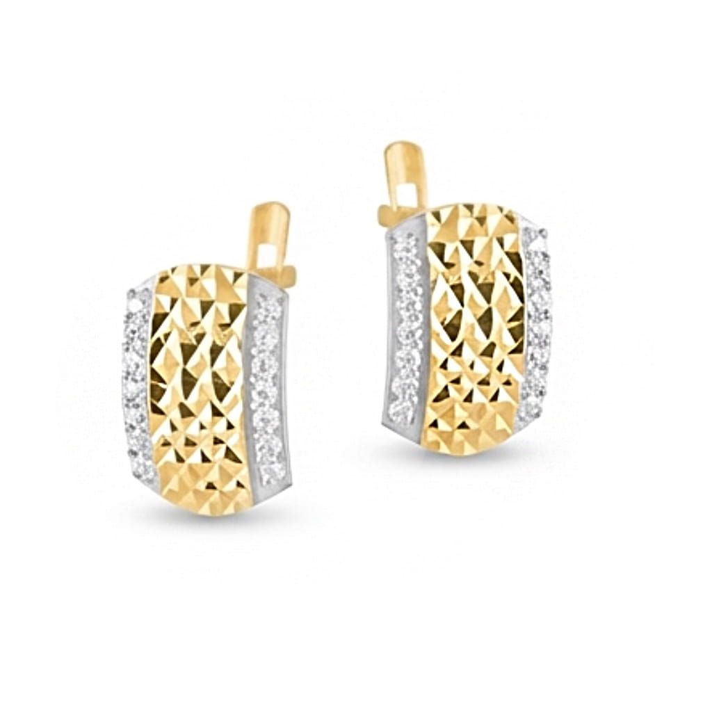 Złote Kolczyki "Geometryczny Blask" – Stylowe Kolczyki z Cyrkonią w Nowoczesnym Kształcie