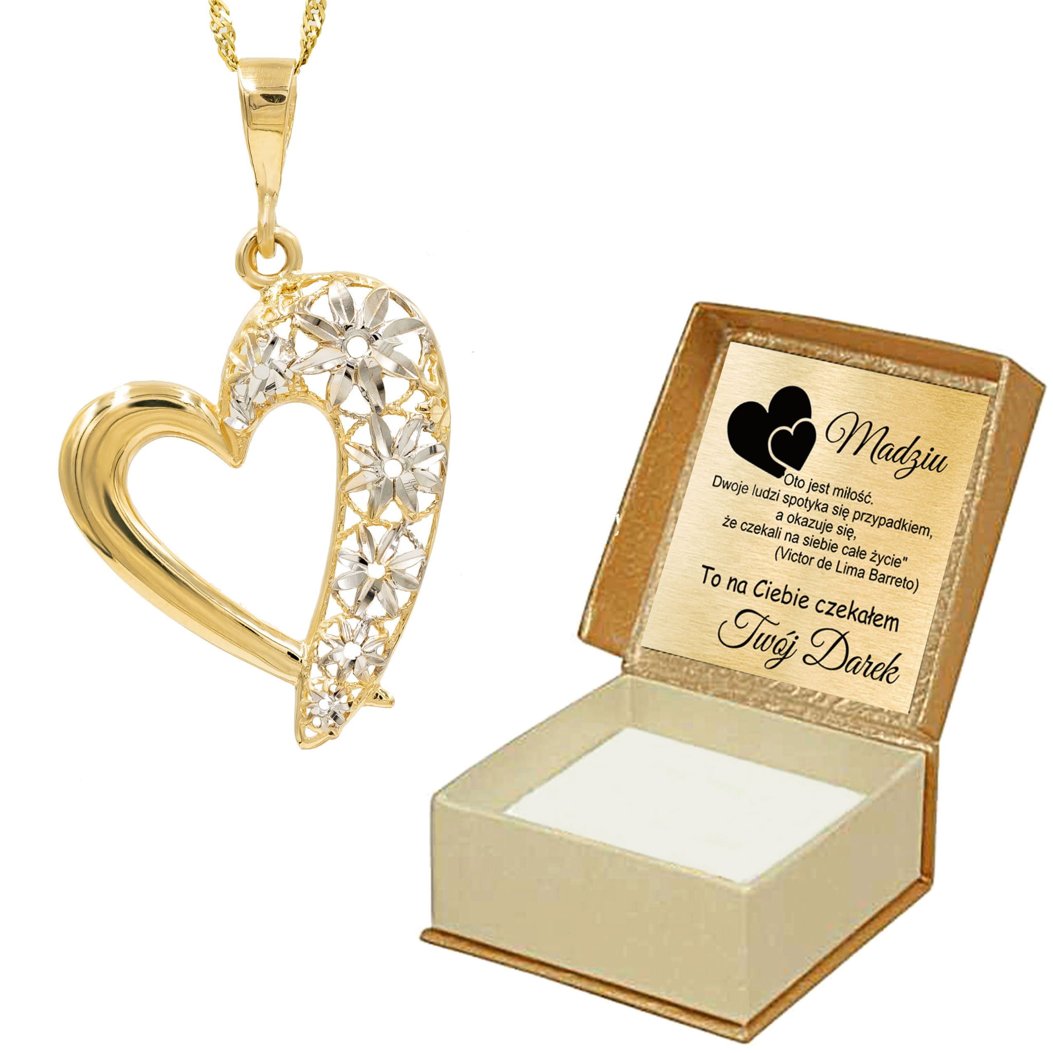 Zawieszka złote serce ze zdobieniem. Cudowny prezent, który możemy wręczyć z okazji imienin, urodzin czy także rocznicy. Wręczony upominek na pewno spowoduje uśmiech na twarzy. Każdy wzór posiada metkę jubilerską. Opakowanie GRATIS.