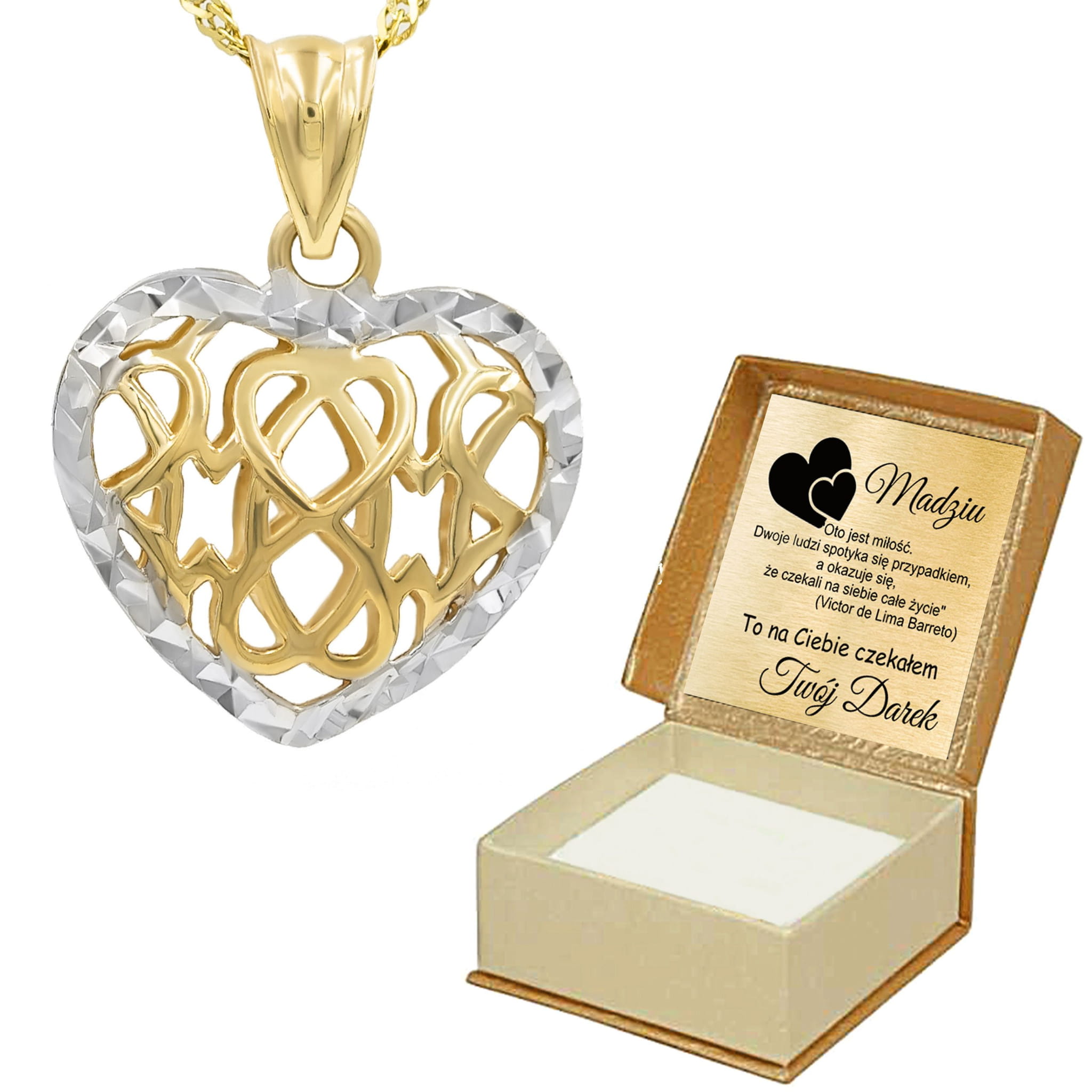 Złota zawieszka ażurowe serce
