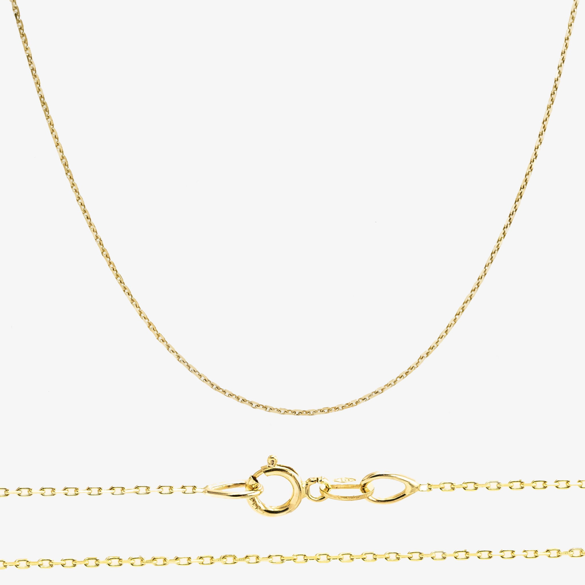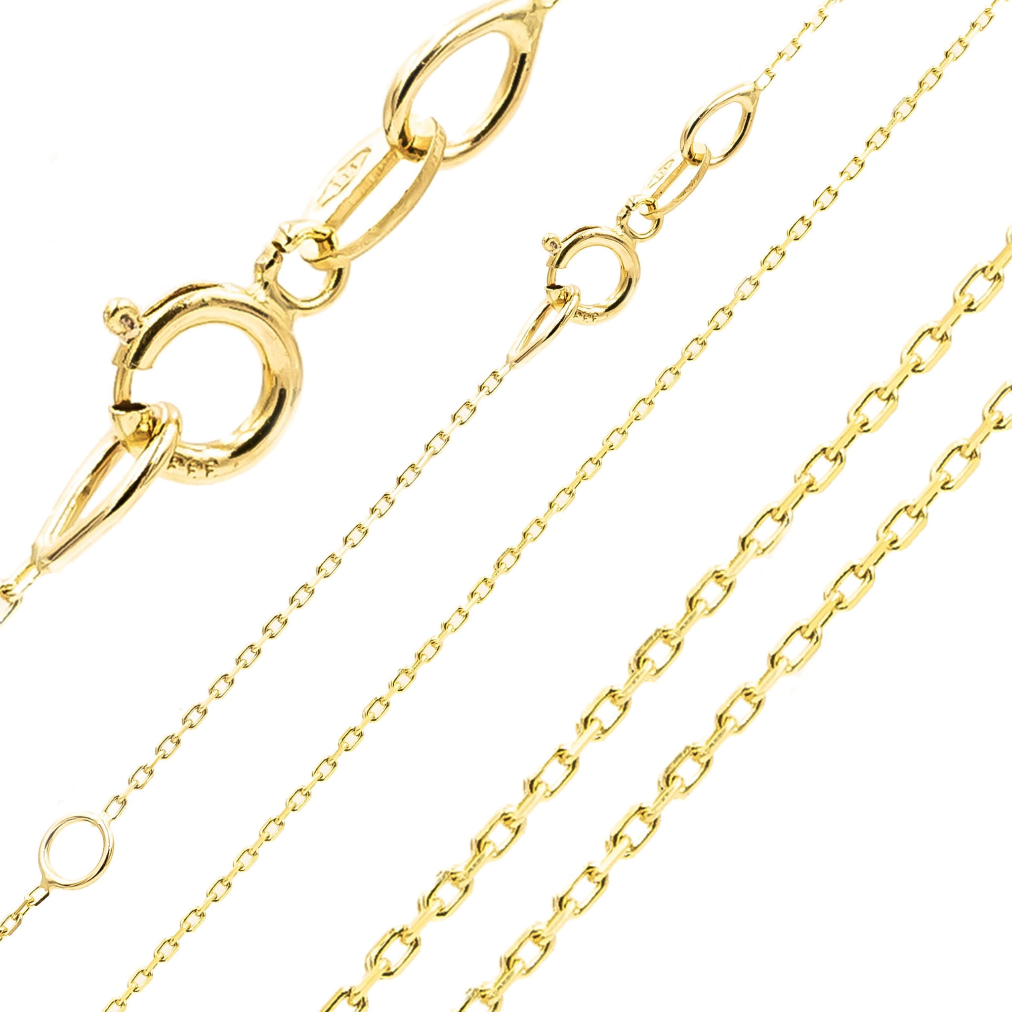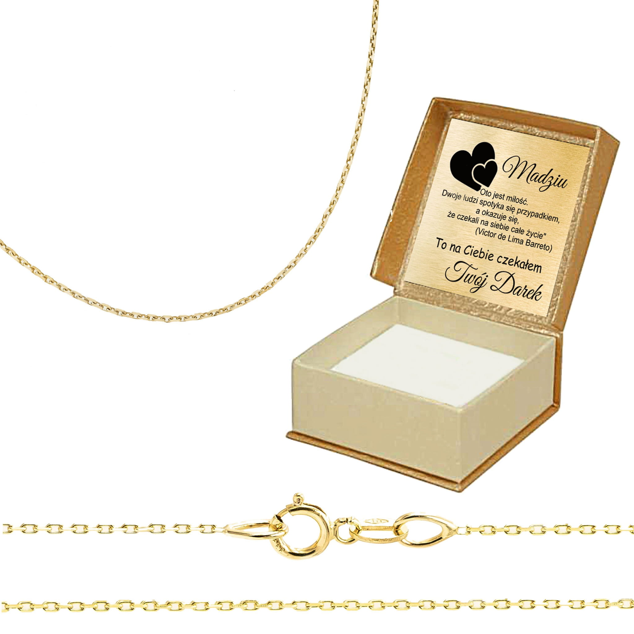 Złoty łańcuszek o delikatnym splocie dla niej. Biżuteria o długości 50cm została wykonana z żółtego złota o najwyższej jakości próbie 0.585. Z pewnością doda elegancji Twojej stylizacji. Podarowana kobiecie z okazji urodzin, Dnia Kobiet oraz wręczona bez okazji z pewnością wywoła u niej wiele radości i szeroki uśmiech na twarzy.