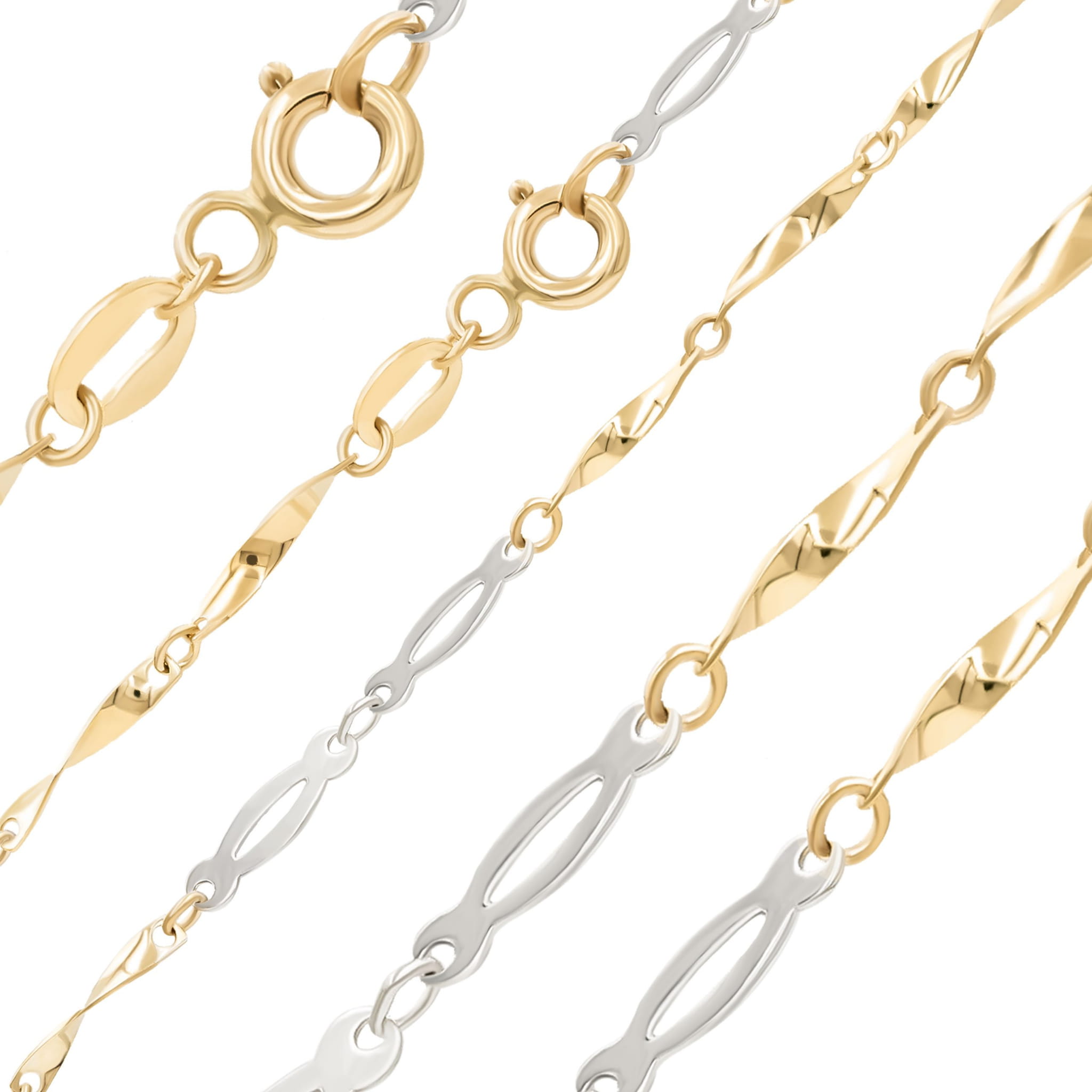 Elegancka Bransoletka Subtelne Delikatne Blaszki Białe Żółte Złoto 0.585