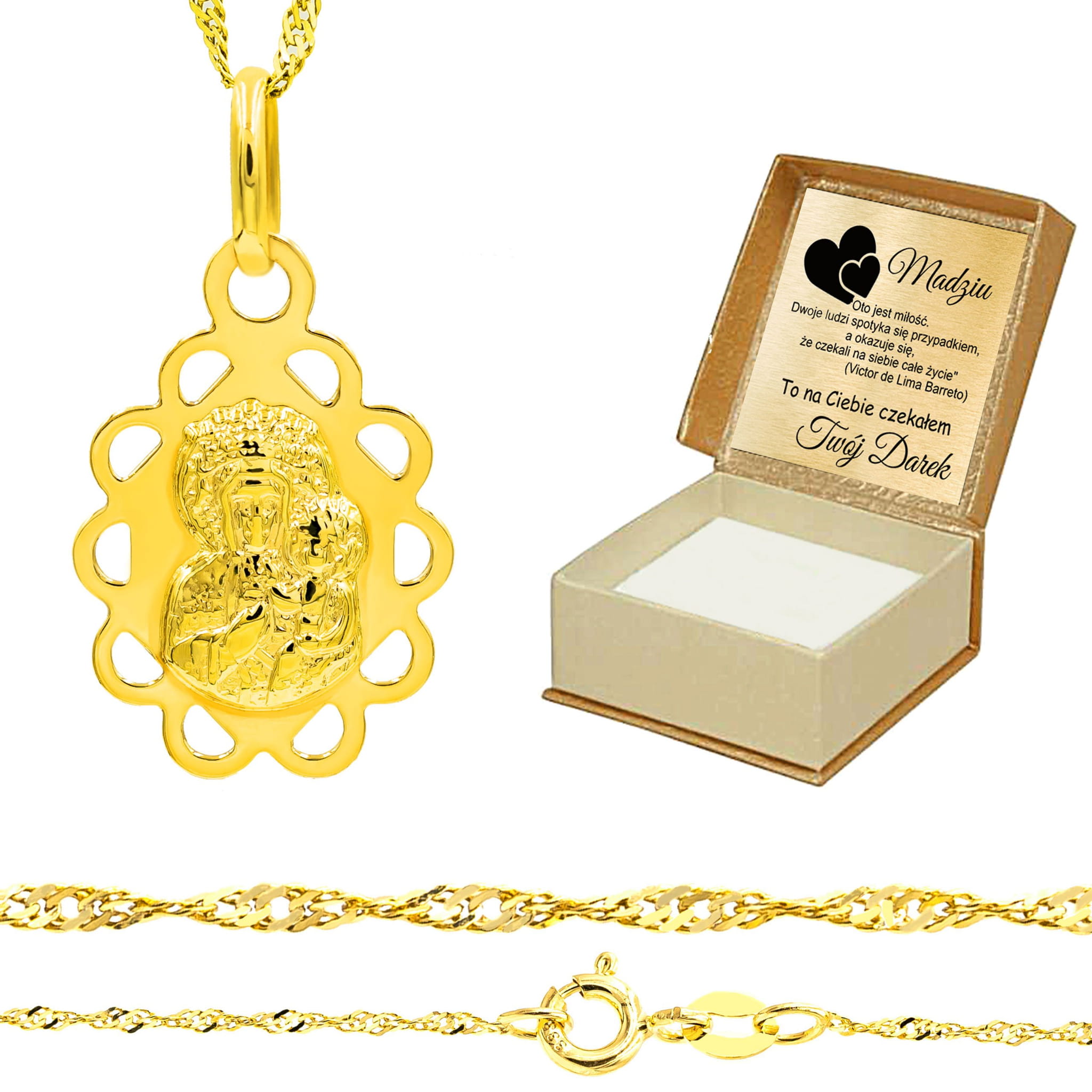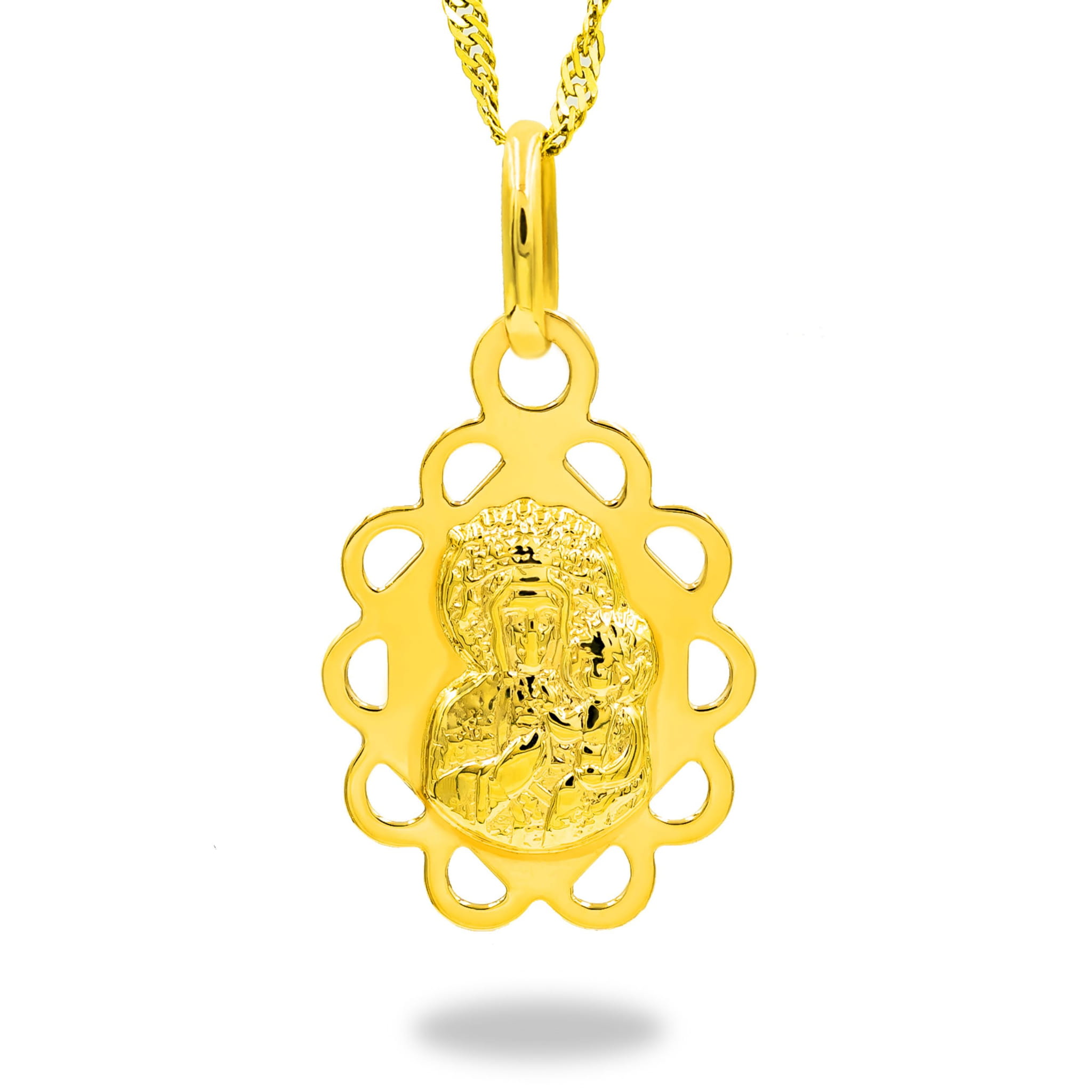 Złoty medalik Matka Boska Częstochowska w polerowanym kwiatku