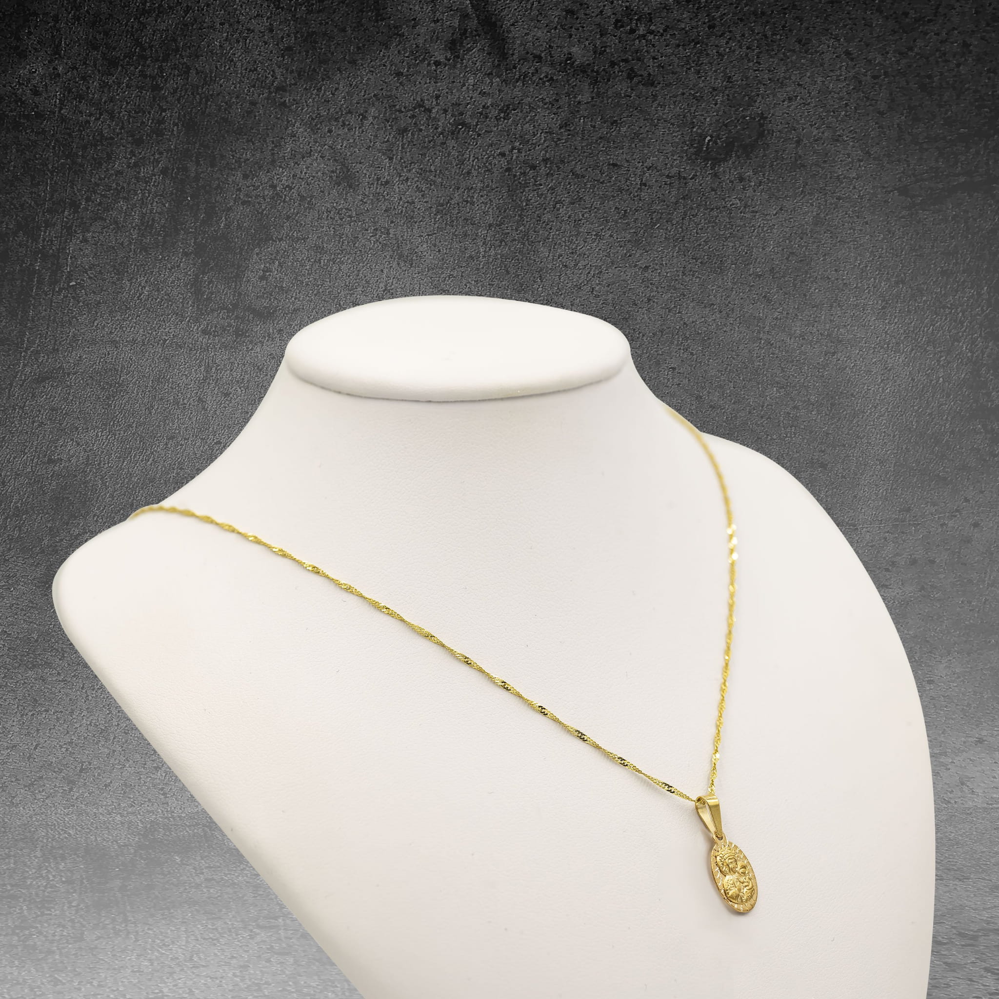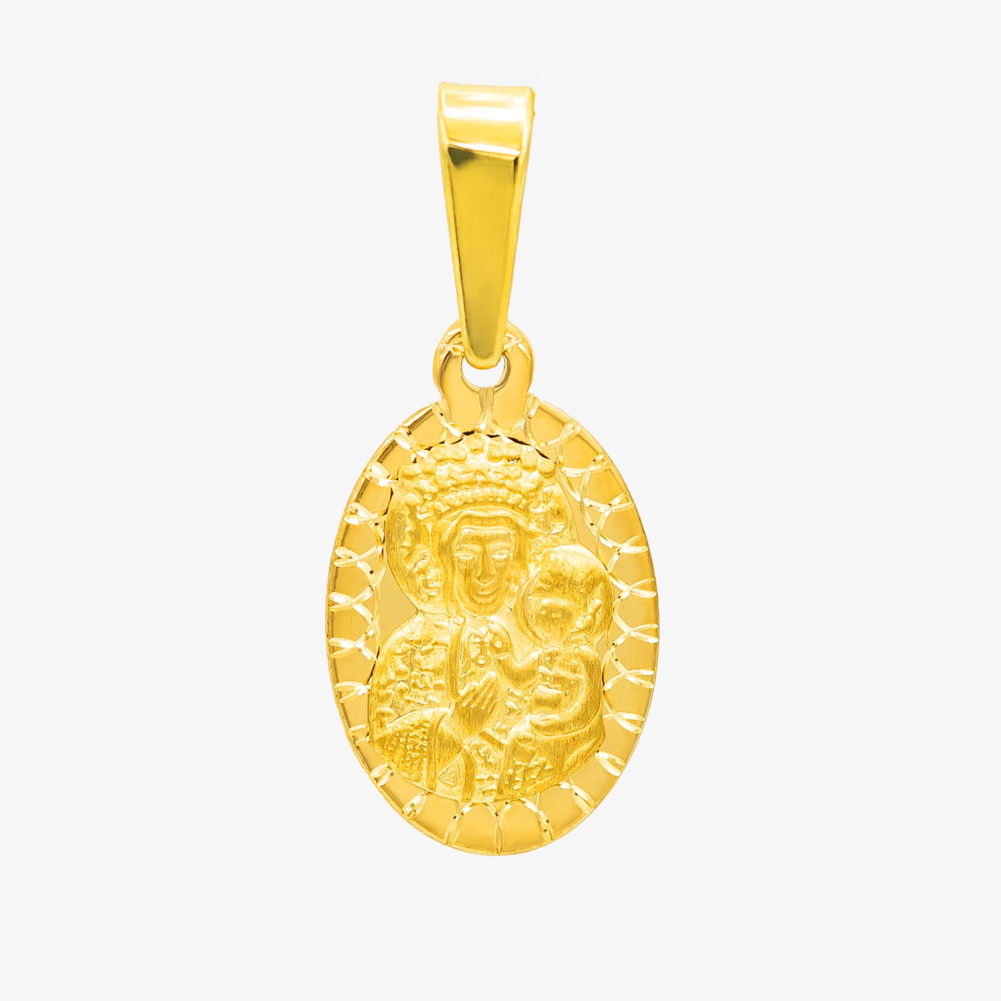 Złoty owalny medalik Matka Boska Częstochowska diamentowana oprawa