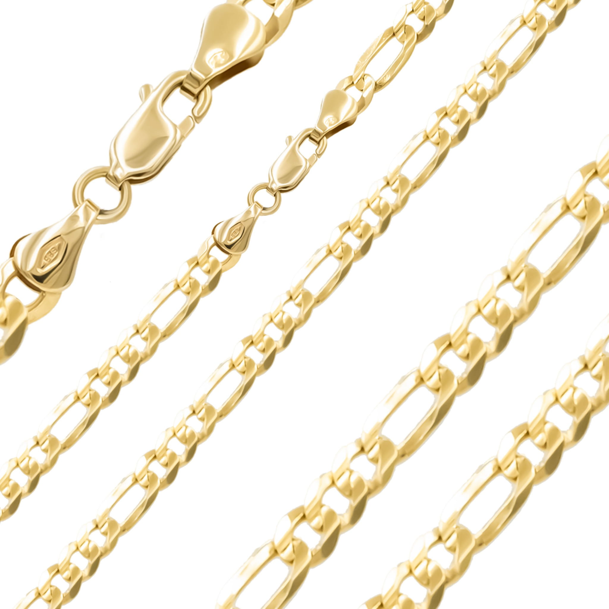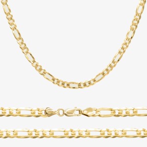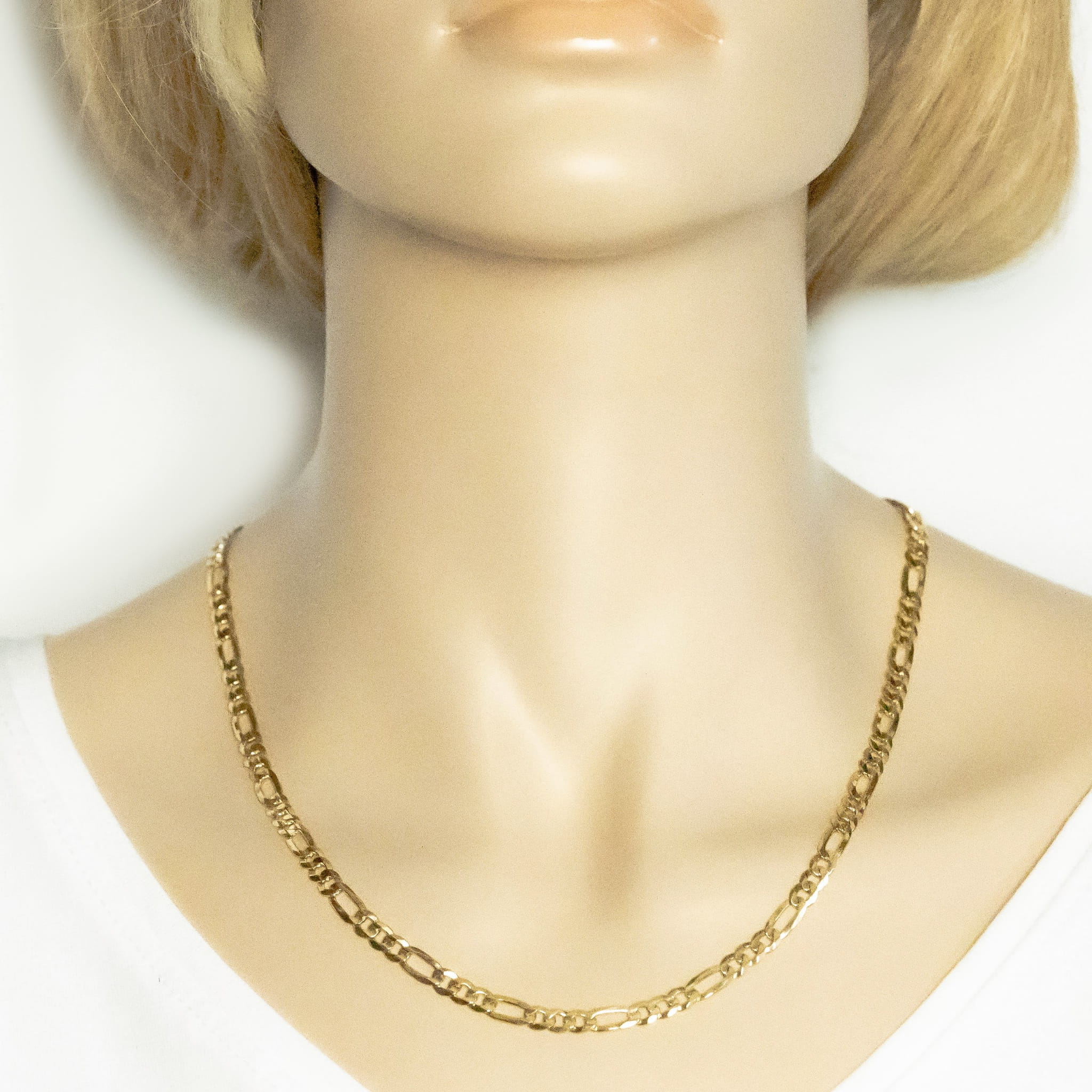 Złoty łańcuszek o splocie Figaro. Biżuteria o długości 50cm została wykonana z żółtego złota o najwyższej jakości próbie 0.585. Noszona wraz z wieczorową i codzienną stylizacją z pewnością doda elegancji i blasku. Podarowana kobiecie z okazji urodzin, Dnia Kobiet oraz wręczona bez okazji z pewnością wywoła u niej radość i szeroki uśmiech na twarzy.