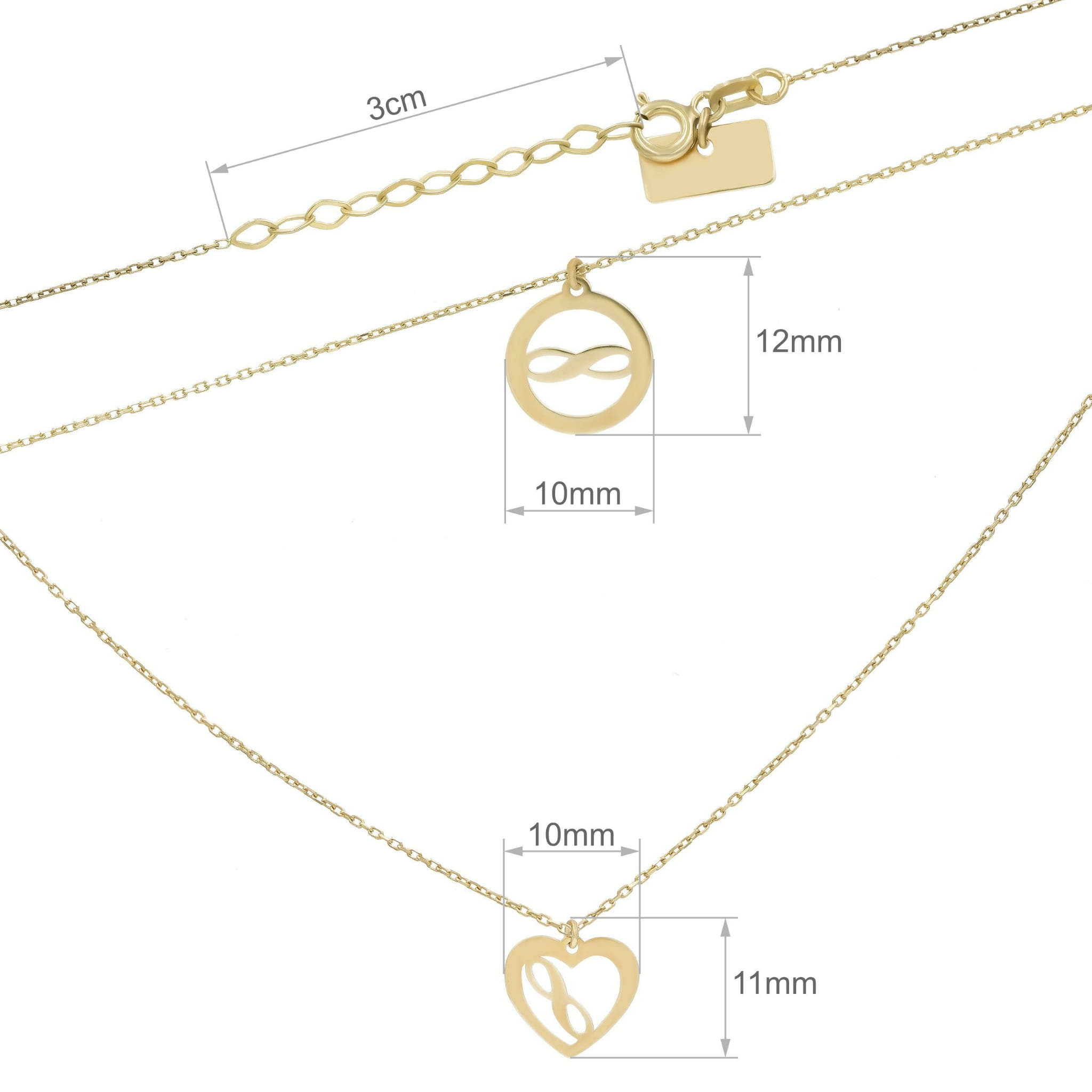 Złoty naszyjnik z motywem nieskończoności i sercem