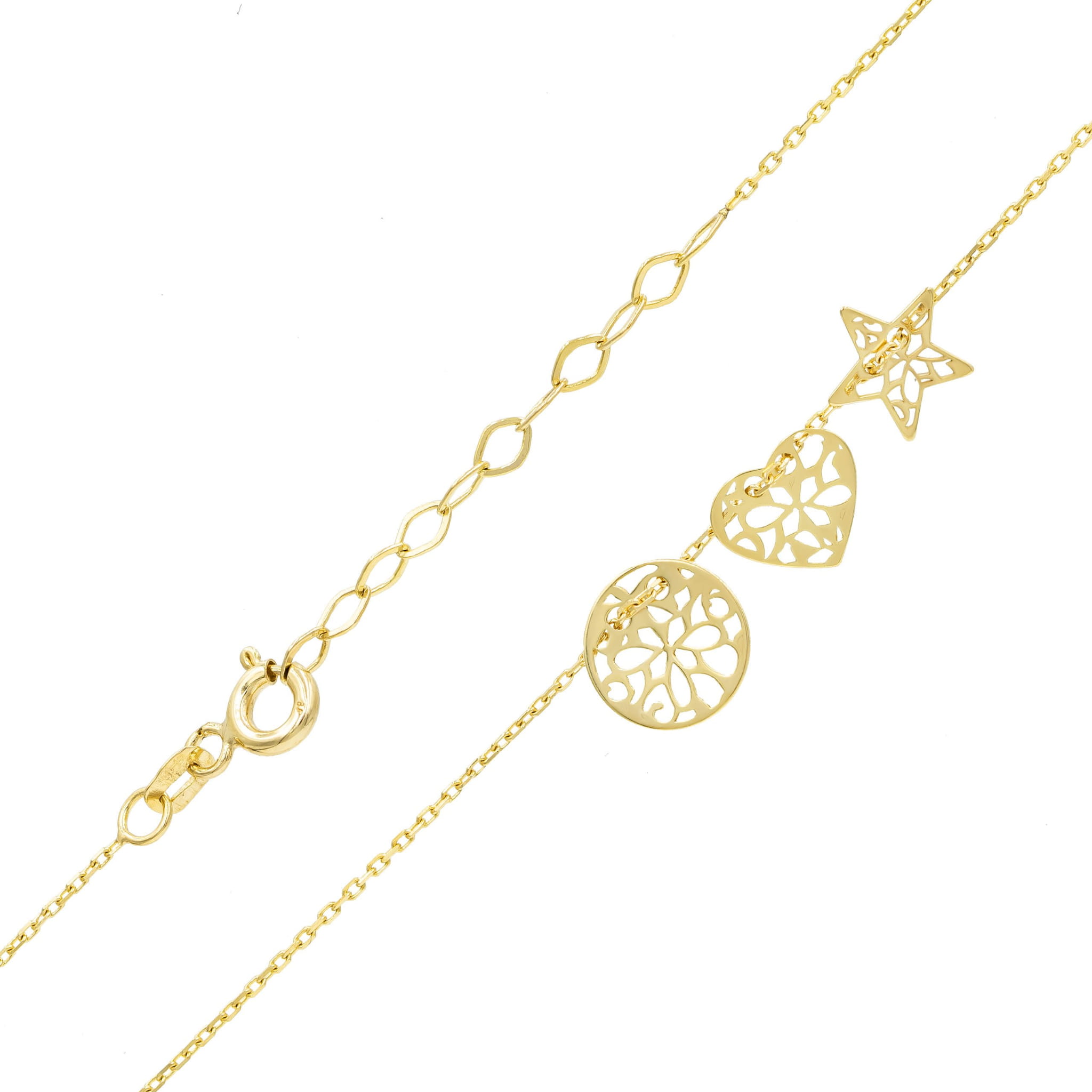 - Złoty naszyjnik z sercem, gwiazdą i okręgiem wykonany z 8-karatowego złota (próba 333), co zapewnia trwałość i subtelny połysk.