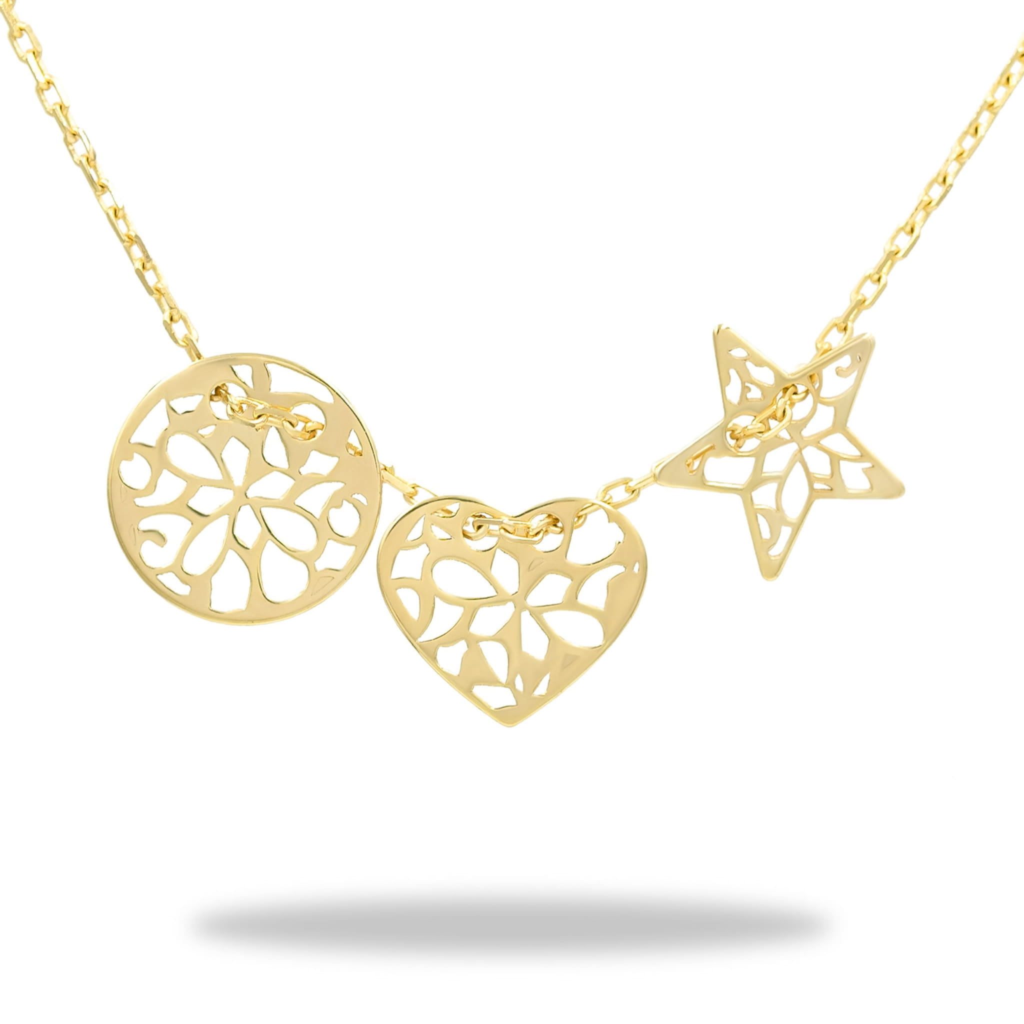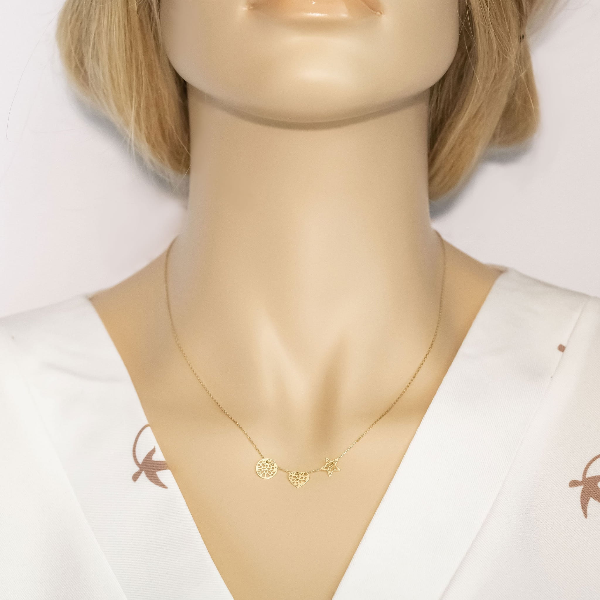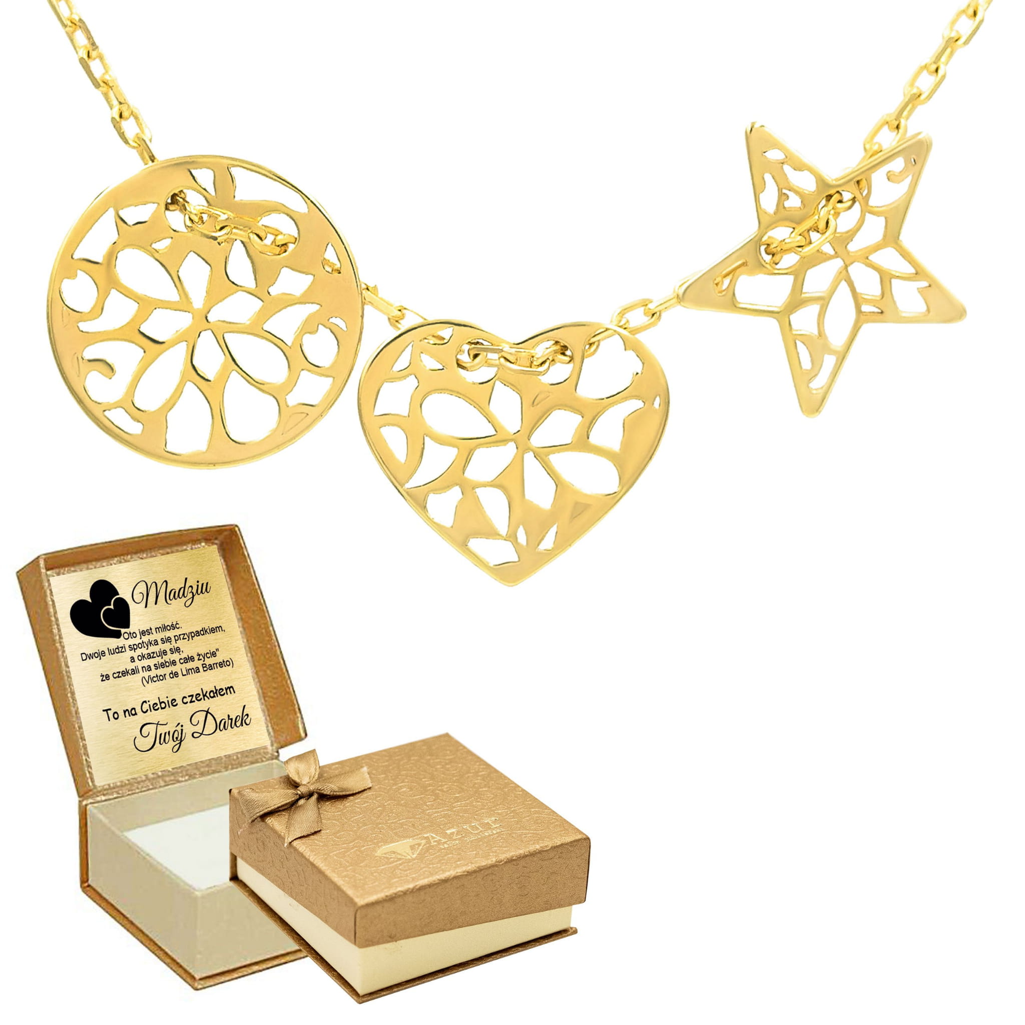 Złoty naszyjnik z sercem, gwiazdą i okręgiem – wyrafinowana elegancja