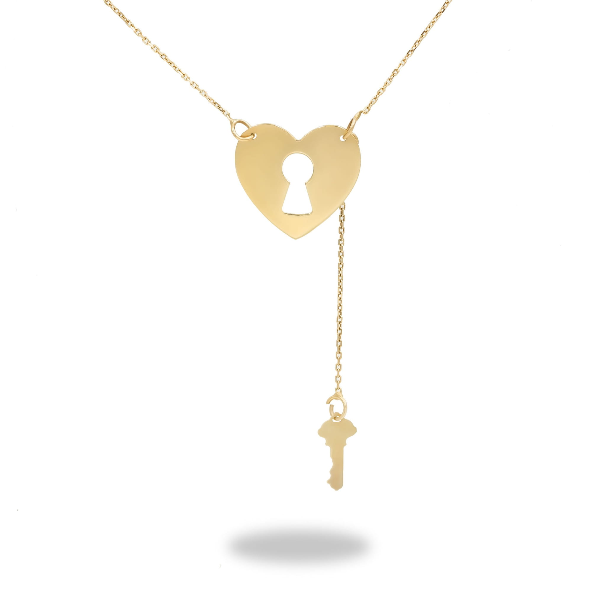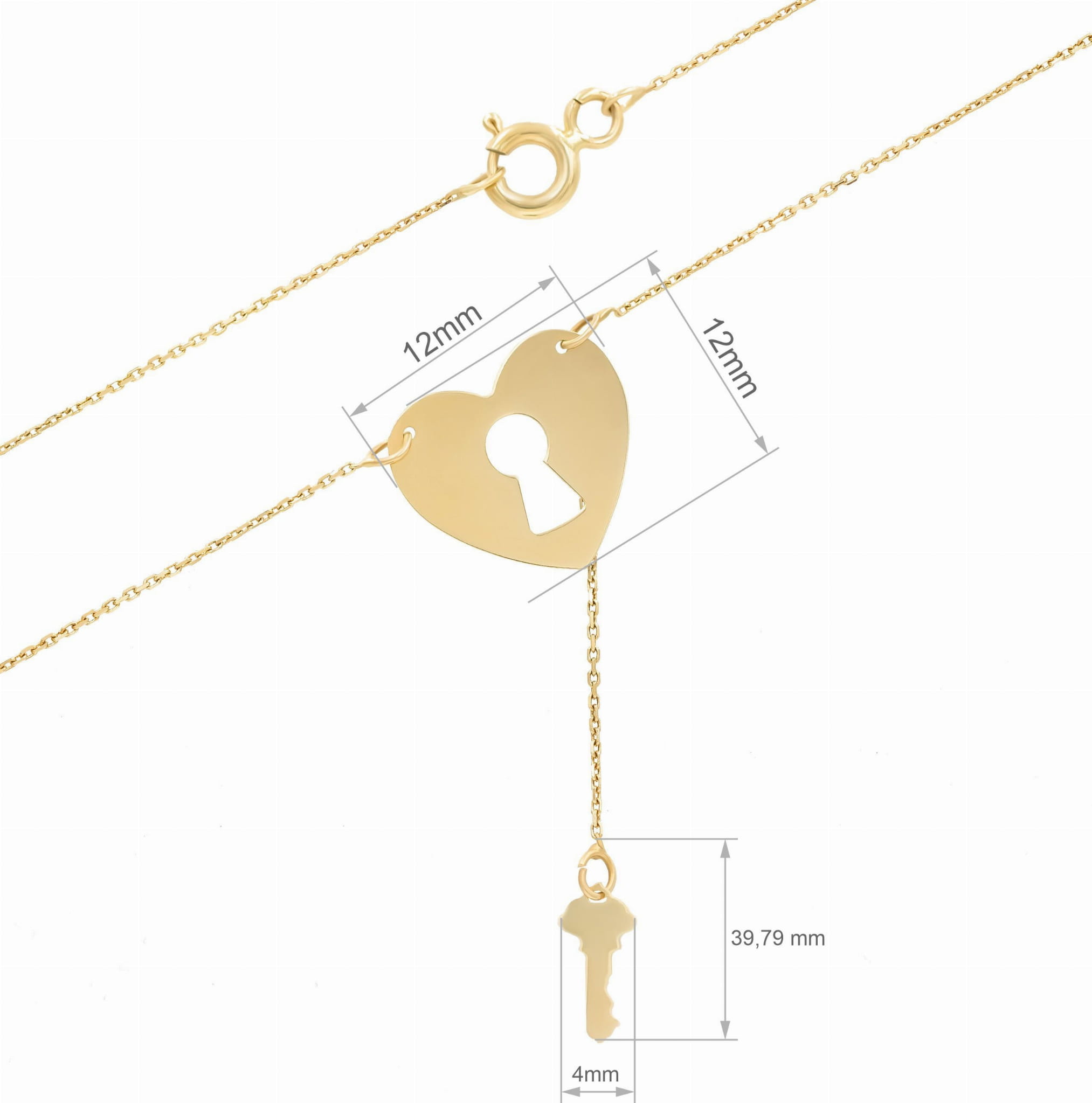 Złoty naszyjnik z motywem serca i klucza