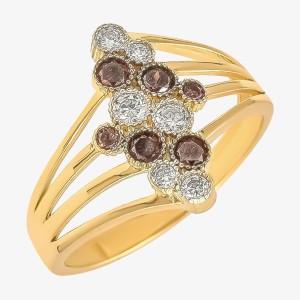 Złoty, orygialny pierścionek z barwionymi cyrkoniami r16 0.585