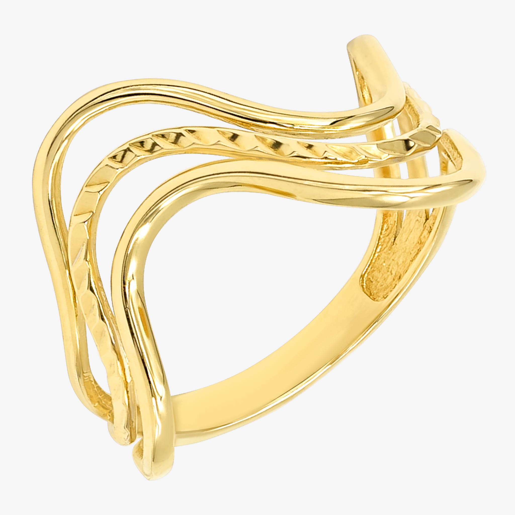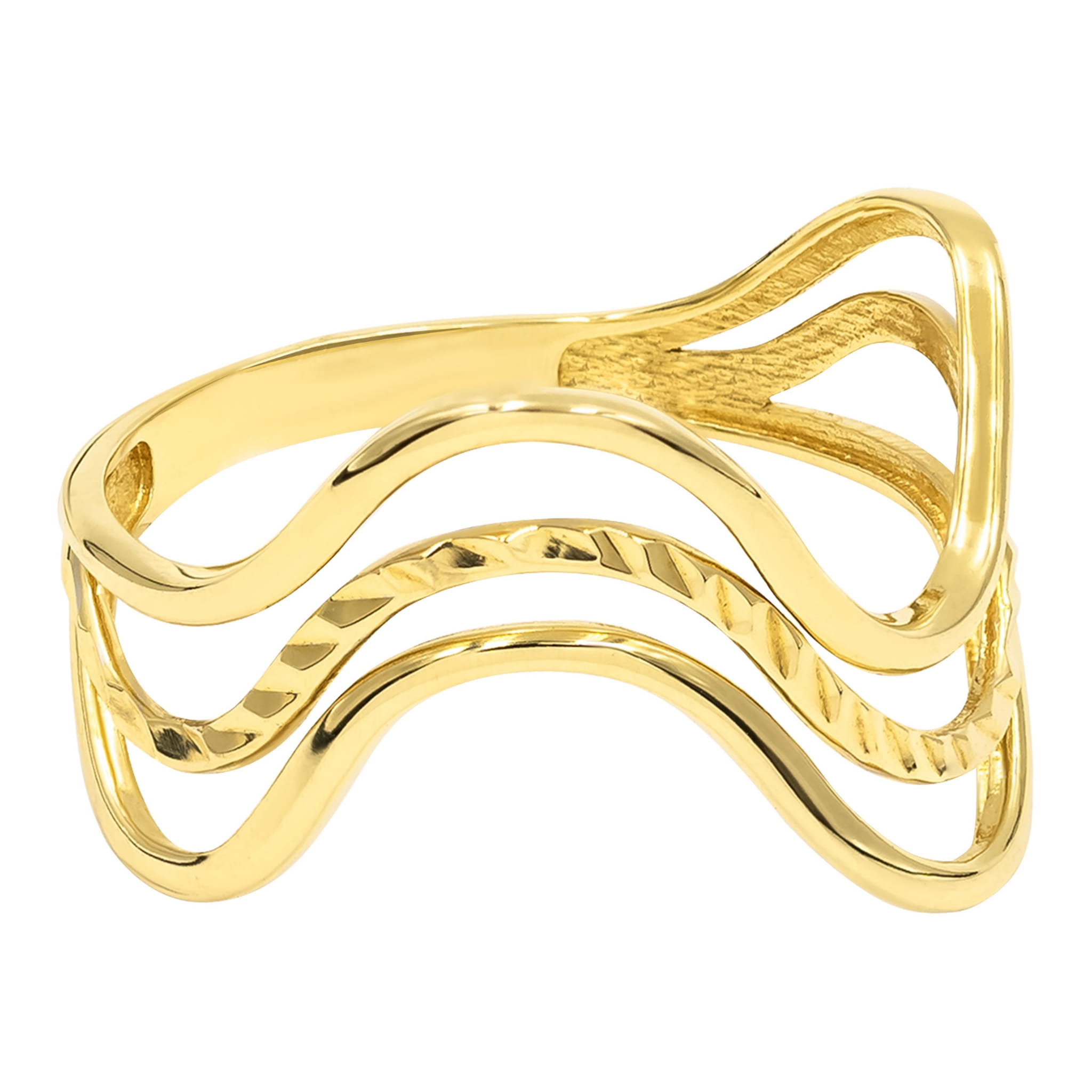 Złoty pierścionek o oryginalnym wzorze z subtelnym zdobieniem.