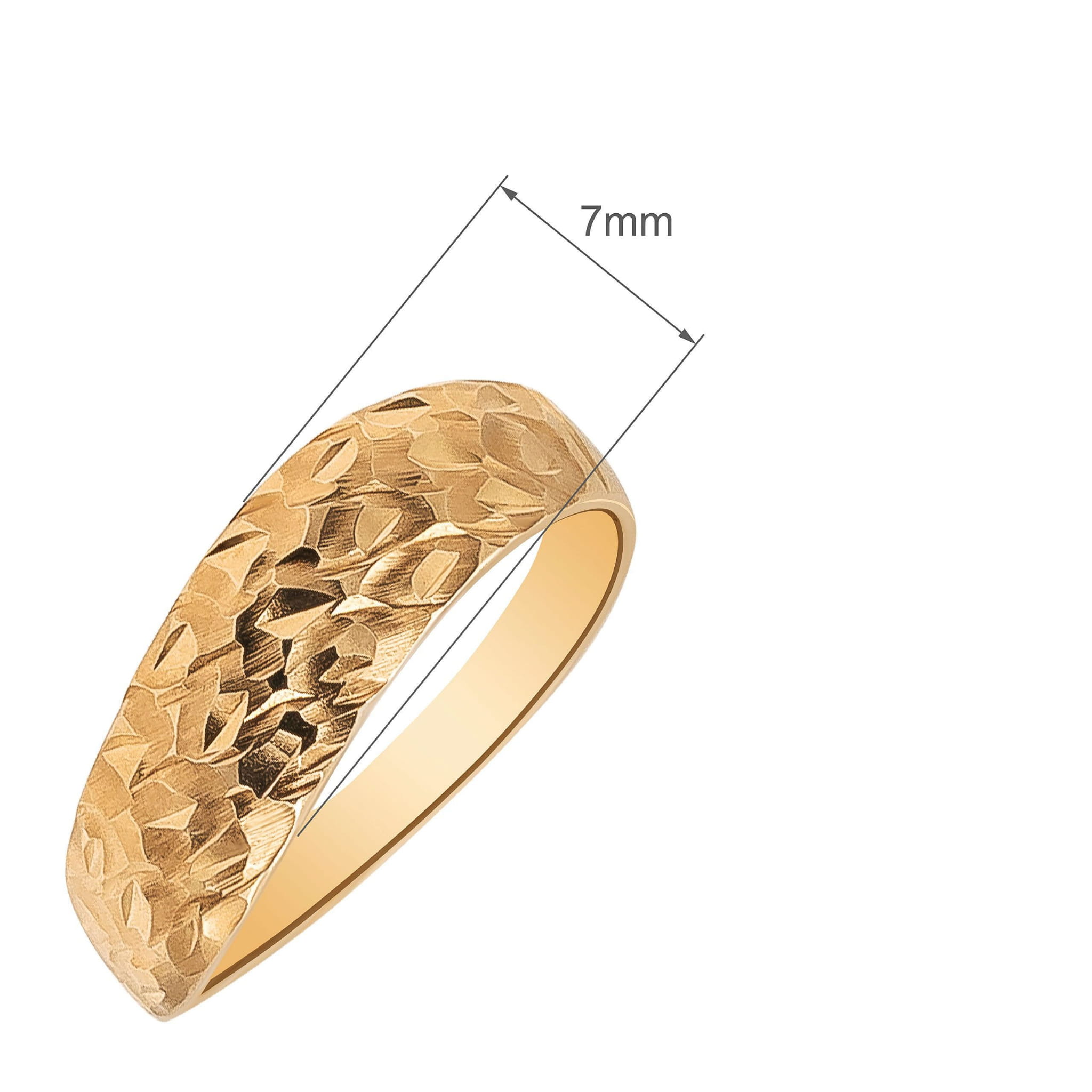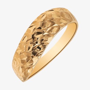 Złoty pierścionek z oryginalnym, matowym i delikatnym zdobienie.