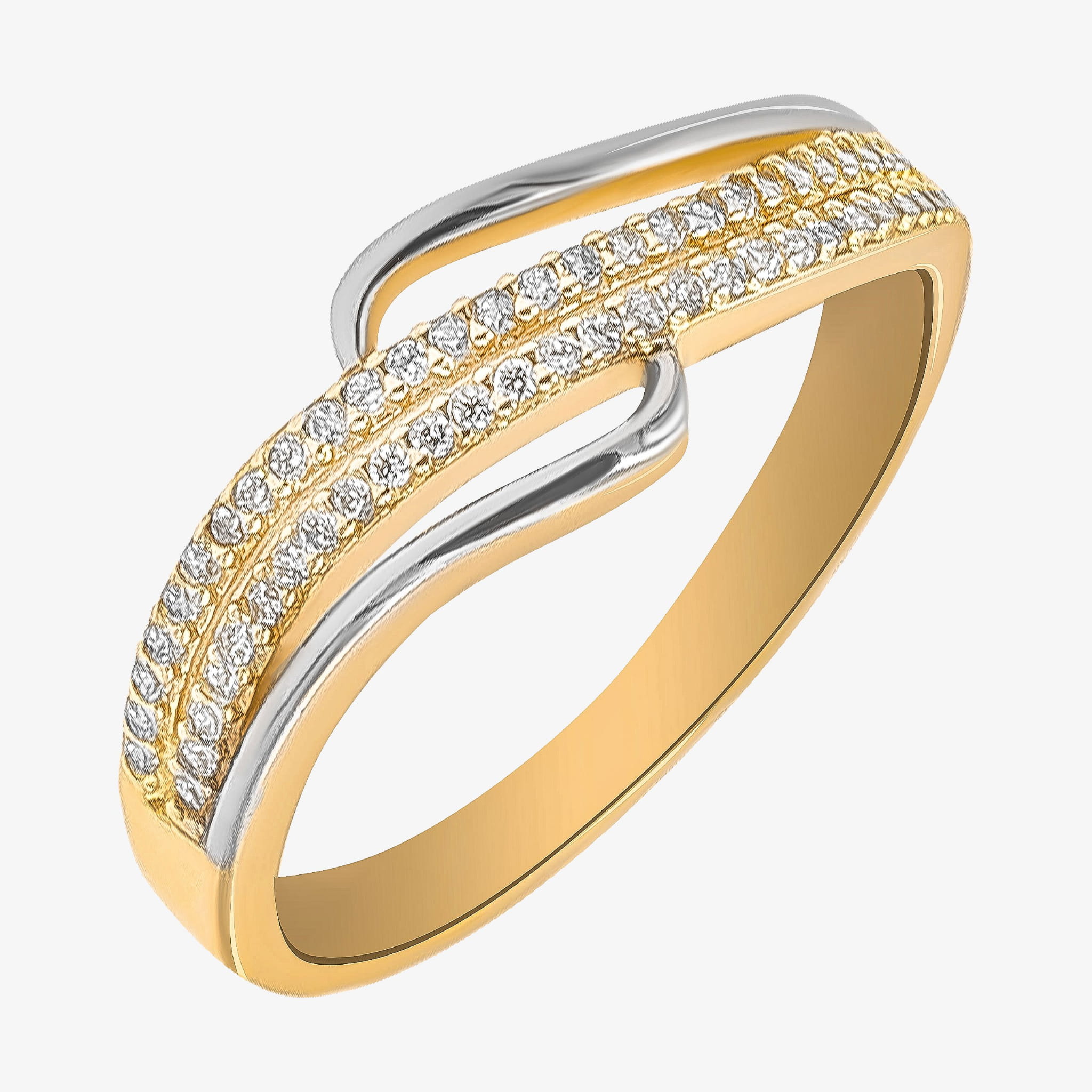 Złoty pierścionek w oryginalnym wzorze i białymi cyrkoniami r16 0.585