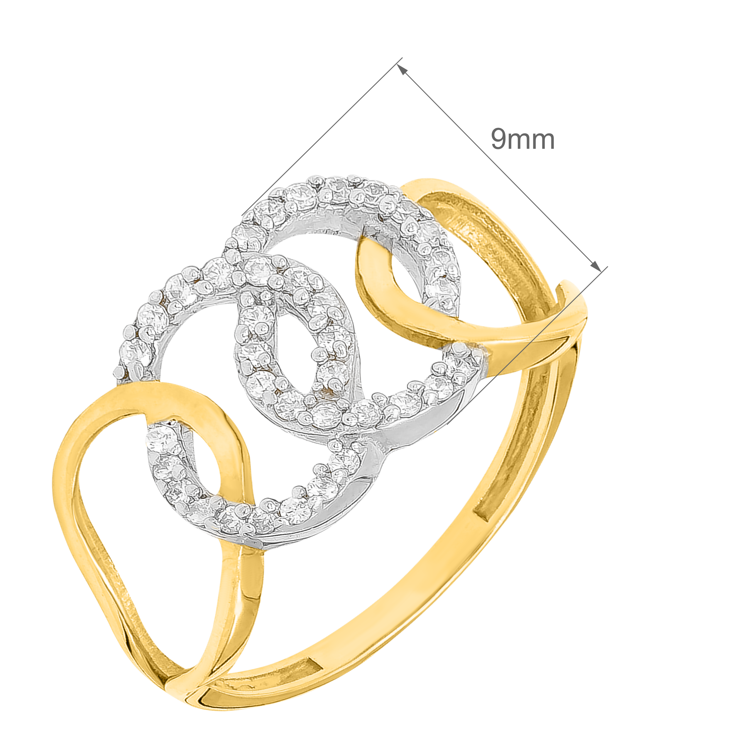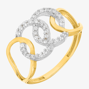 Złoty Pierścionek z Przeplatanymi Kółkami z Osadzonymi Białymi Cyrkoniami Żółte Złoto R15 0.585