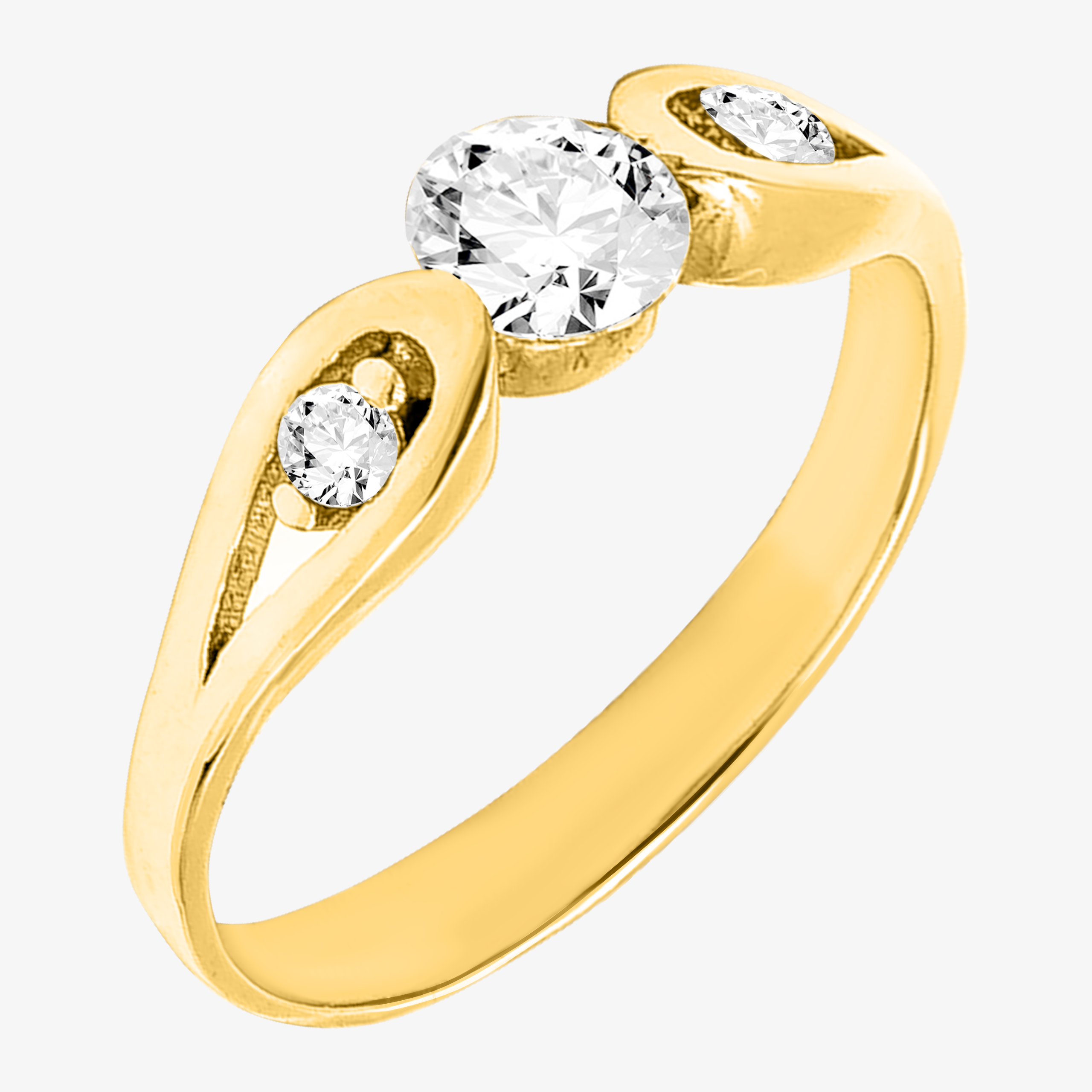 Złoty Pierścionek Zaręczynowy z Delikatnym Wzorem i Białymi Cyrkoniami