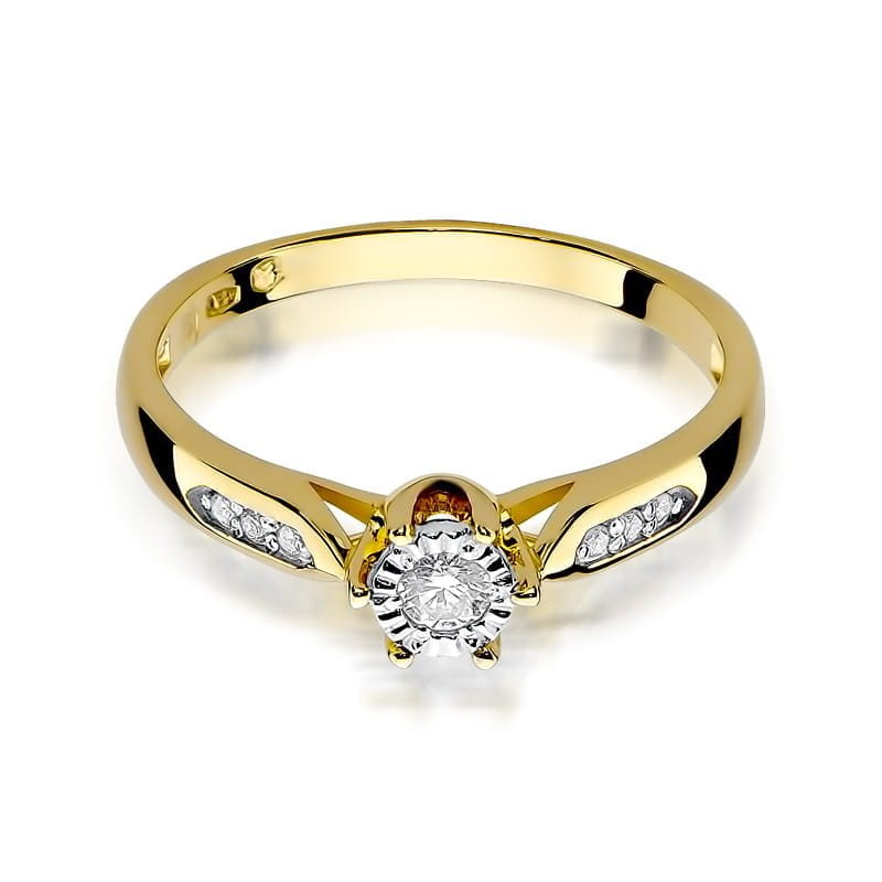 Złoty Pierścionek z Diamentem i Bocznym Wysadzaniem Żółte Złoto