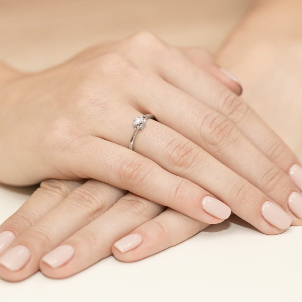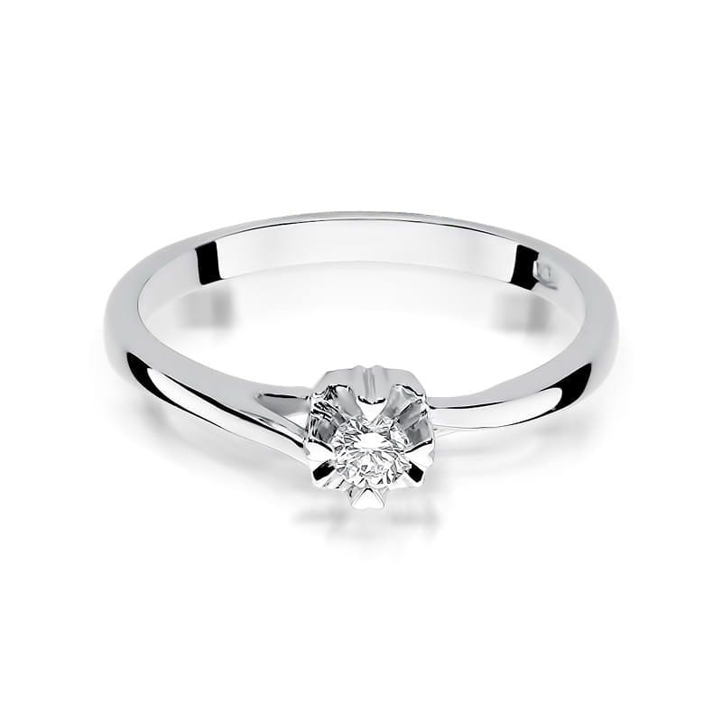 Złoty Pierścionek z Diamentem w Koronie Białe Złoto