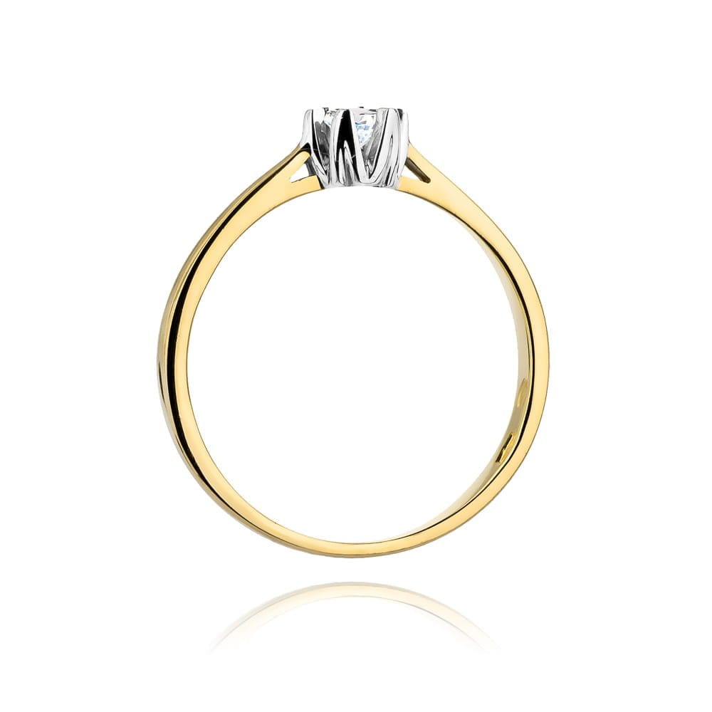 Złoty Pierścionek z Diamentem w Koronie i Smukłym Ramieniem Żółte Złoto