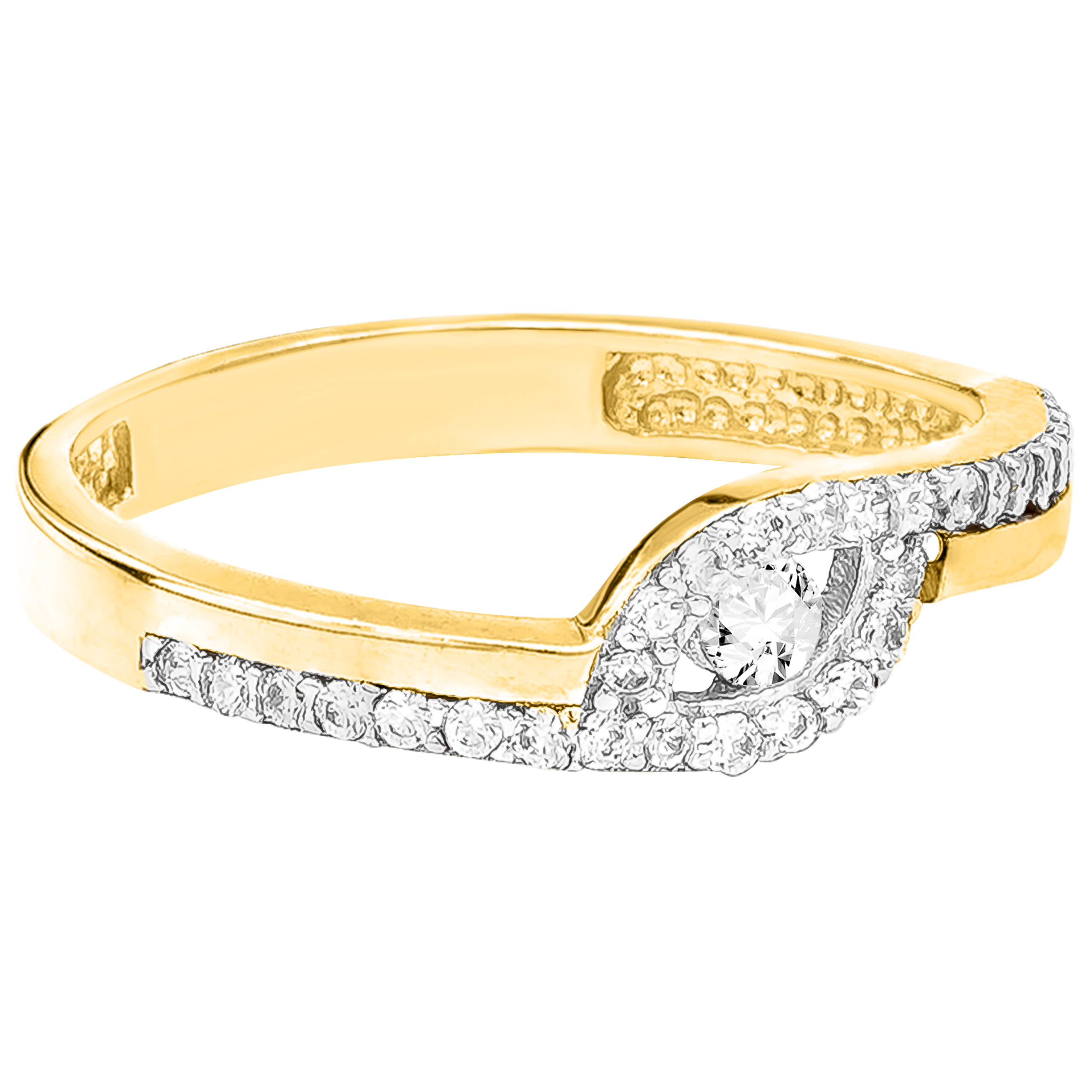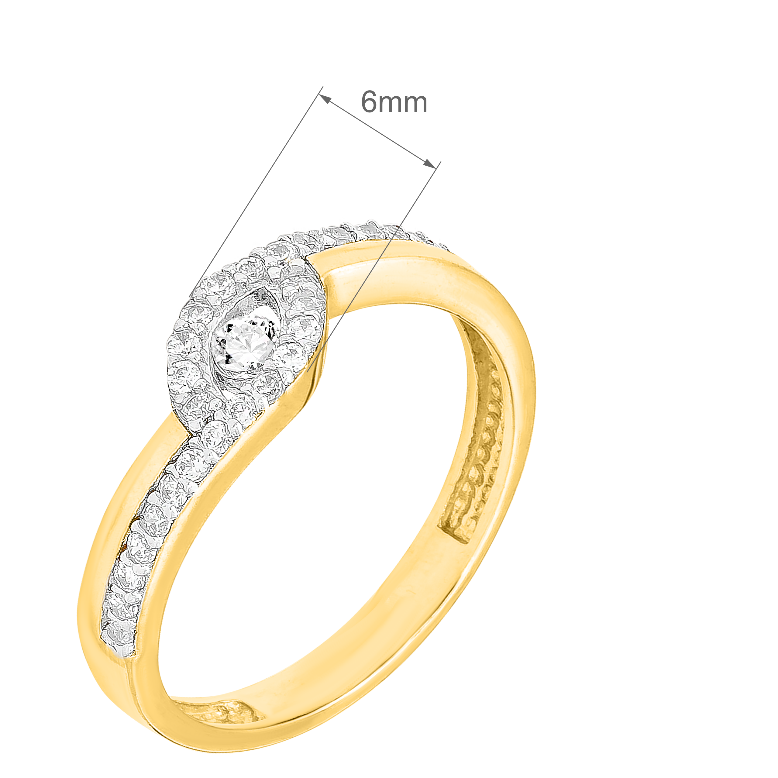 Złoty Pierścionek Zaręczynowy z Zaplatanym Wzorem i Wieloma Białymi Cyrkoniami R16 0.585