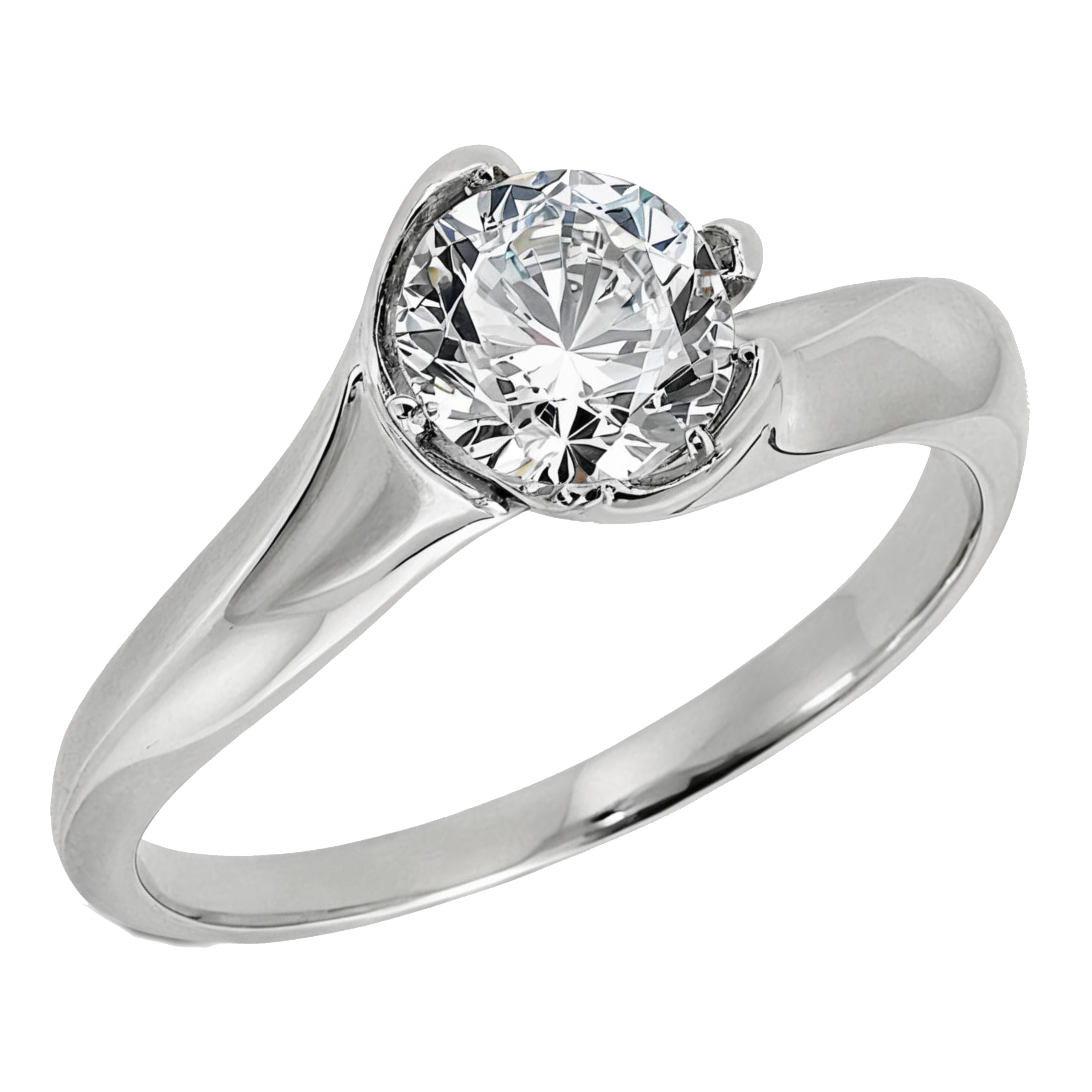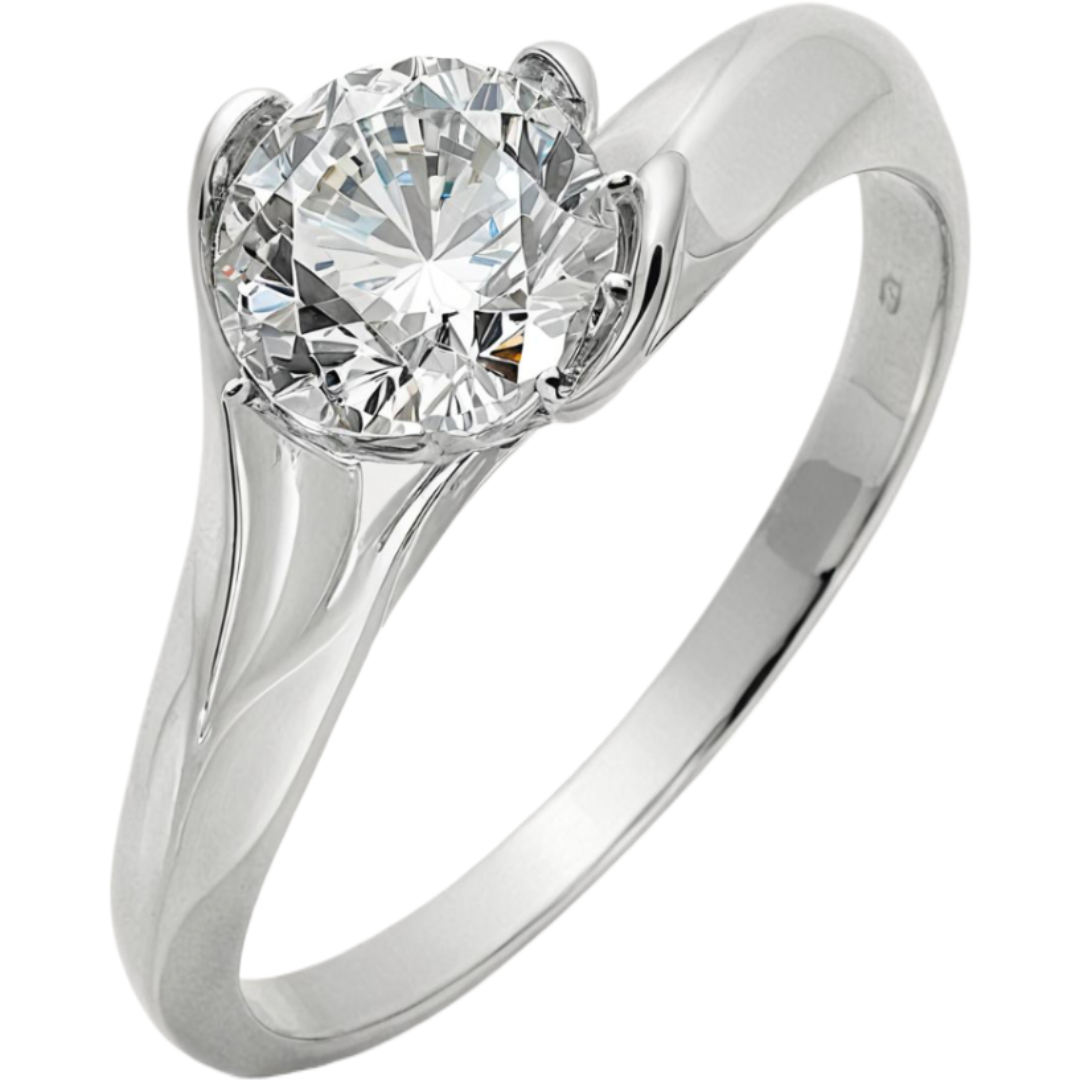 Złoty pierścionek z białego złota z pojedynczym kamieniem, klasyczny
