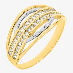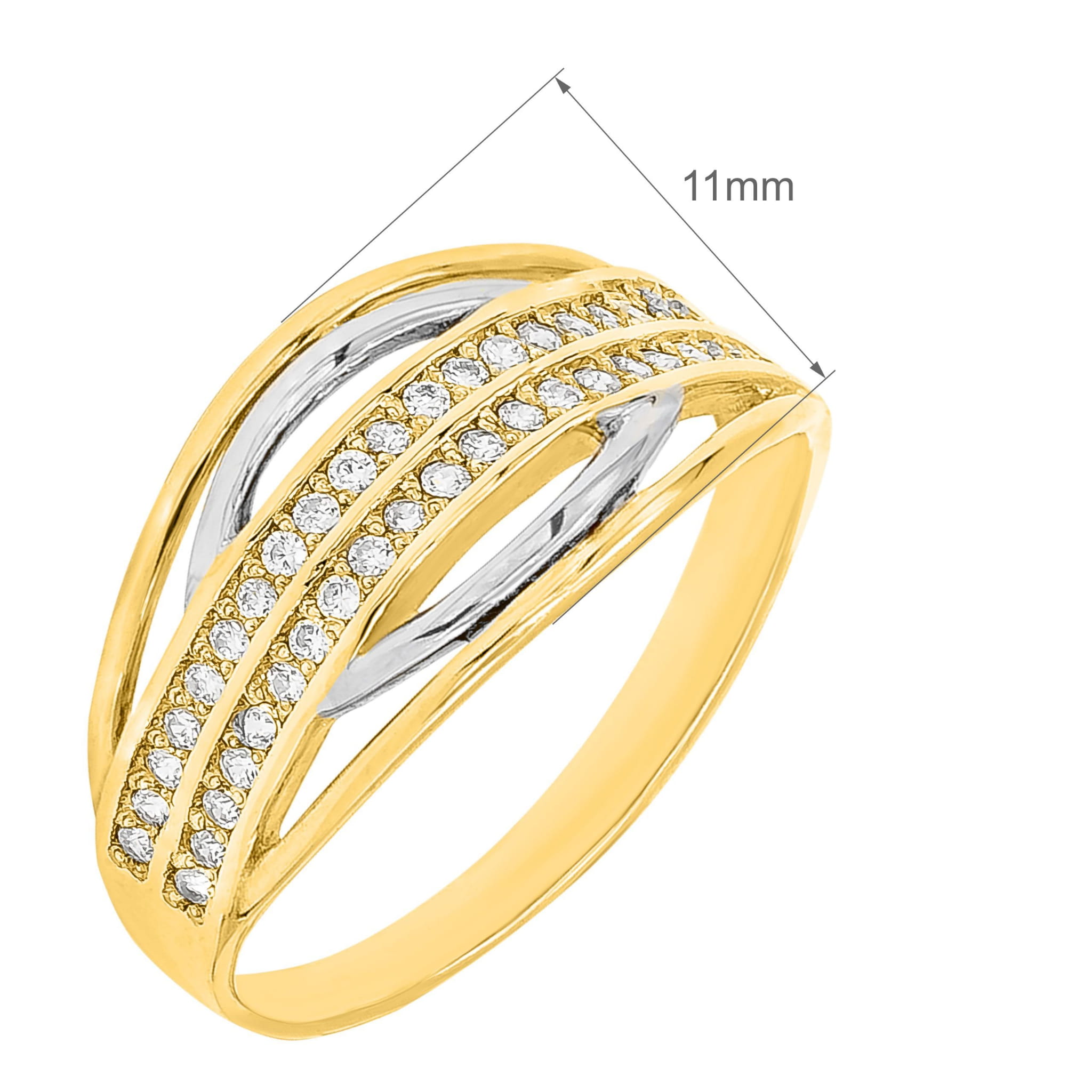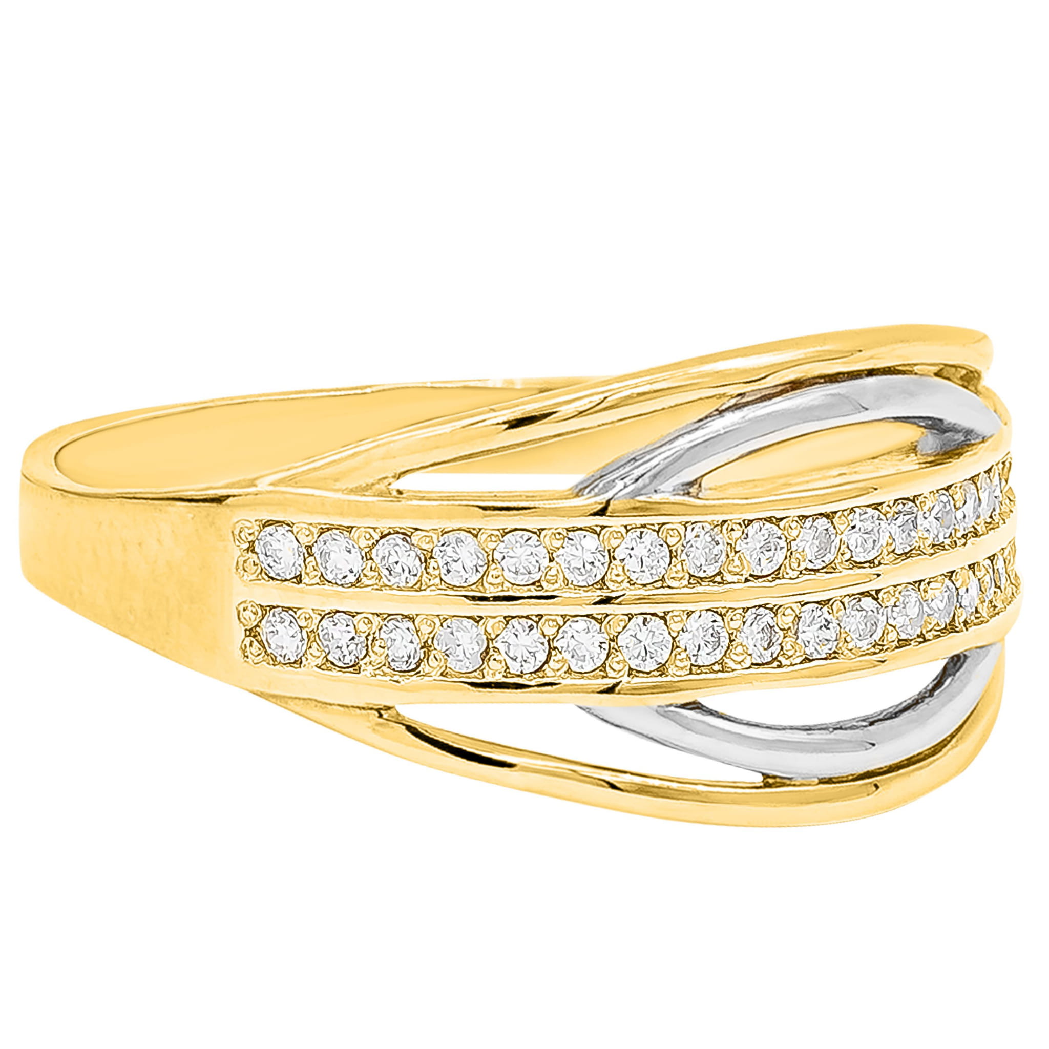 Złoty Pierścionek z Osadzonymi Białymi Cyrkoniami i Oryginalnym Wzorem Białe Żółte Złoto