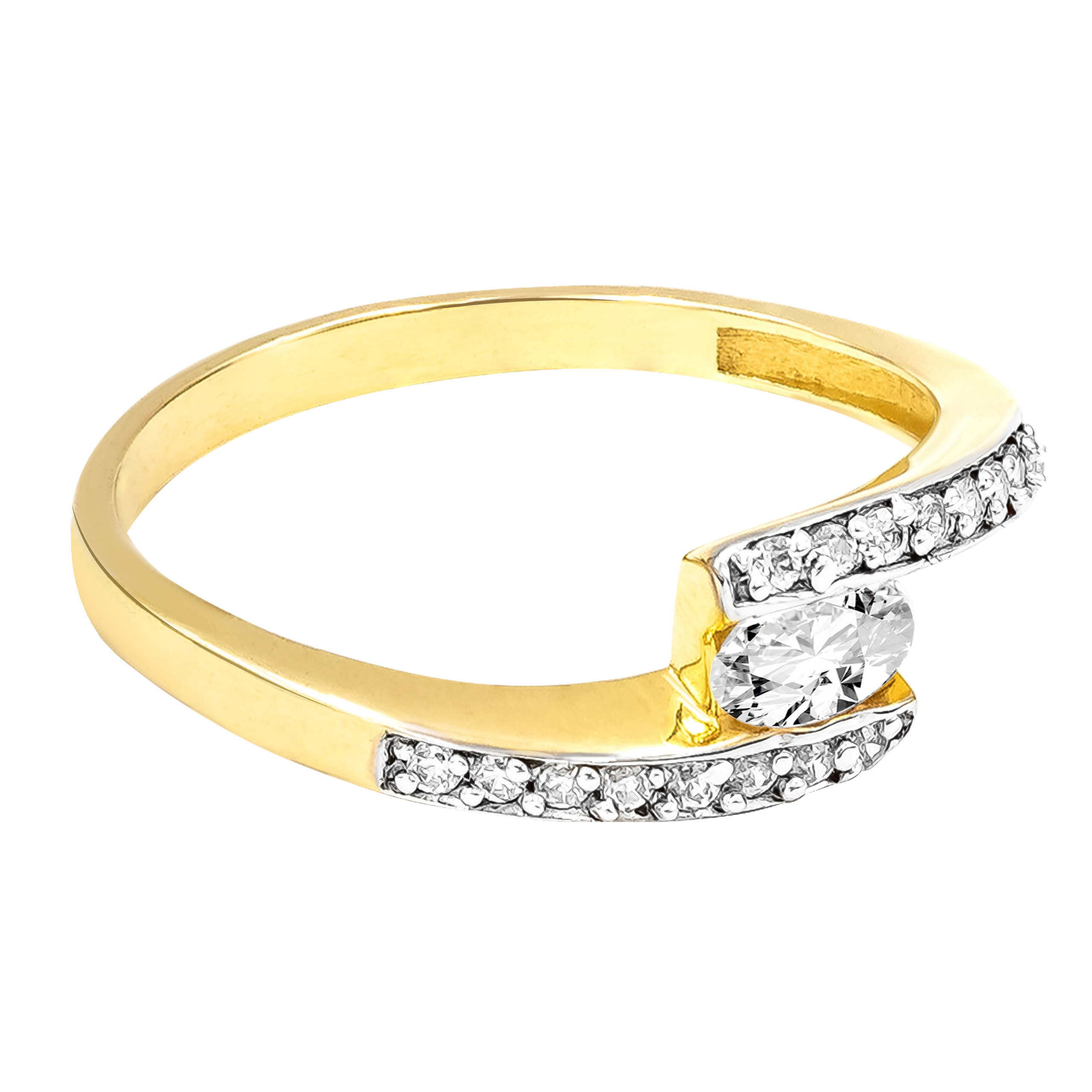 Złoty Pierścionek z Osadzonymi Różnej Wielkości Białymi Cyrkoniami R17 0.585