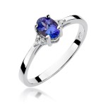 Złoty Pierścionek z Tanzanitowym Oczkiem i Diamentową Oprawą Białe Złoto