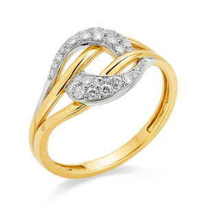 Dwukolorowy, przeplatany design i mocny połysk kamieni sprawiają, że to biżuteria widoczna na dłoni, ale nadal lekka w odbiorze. Złoty pierścionek w tym stylu pasuje do osób, które lubią elegancję „na co dzień” oraz detale, które robią różnicę.