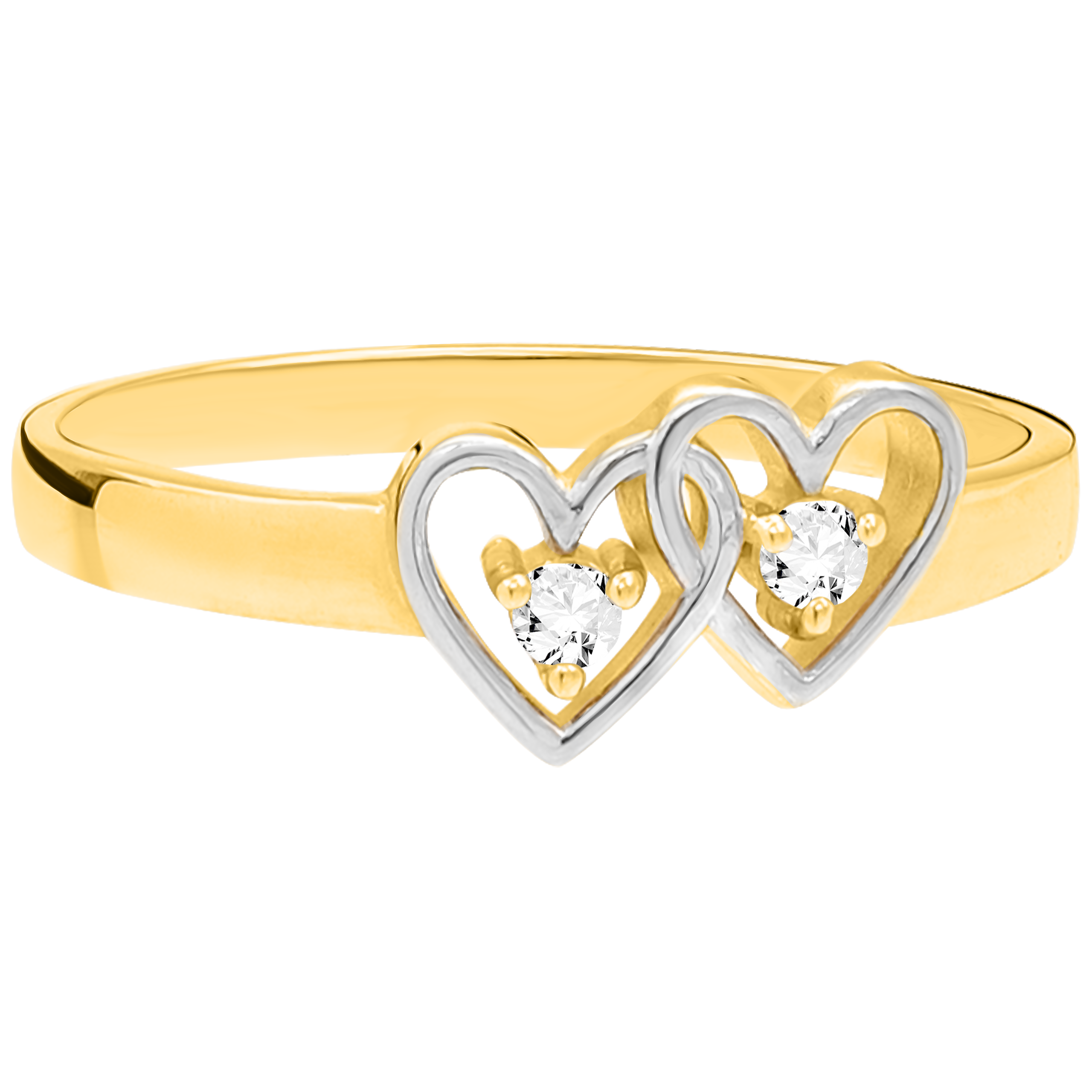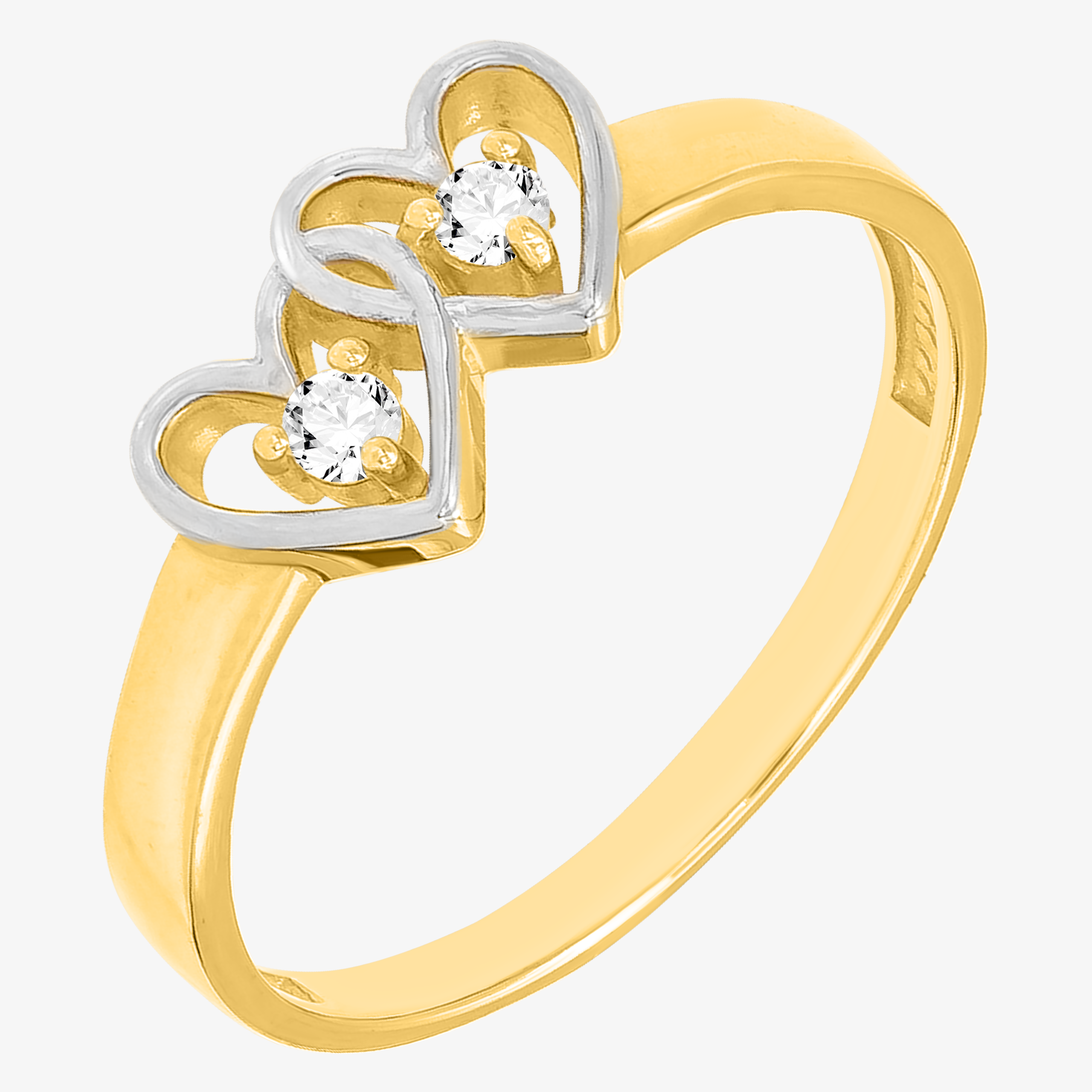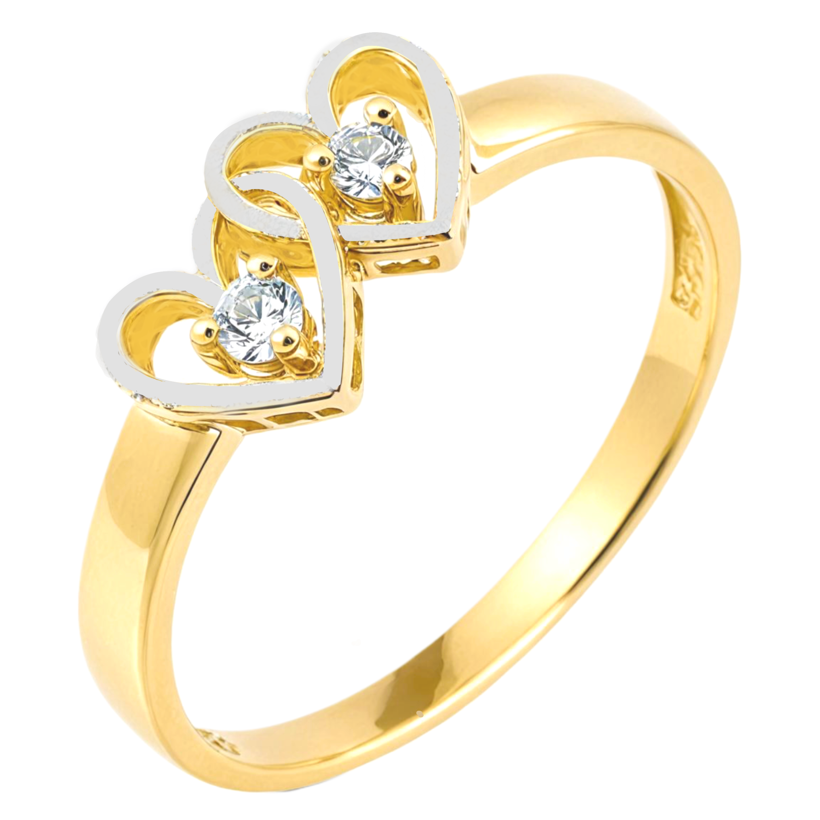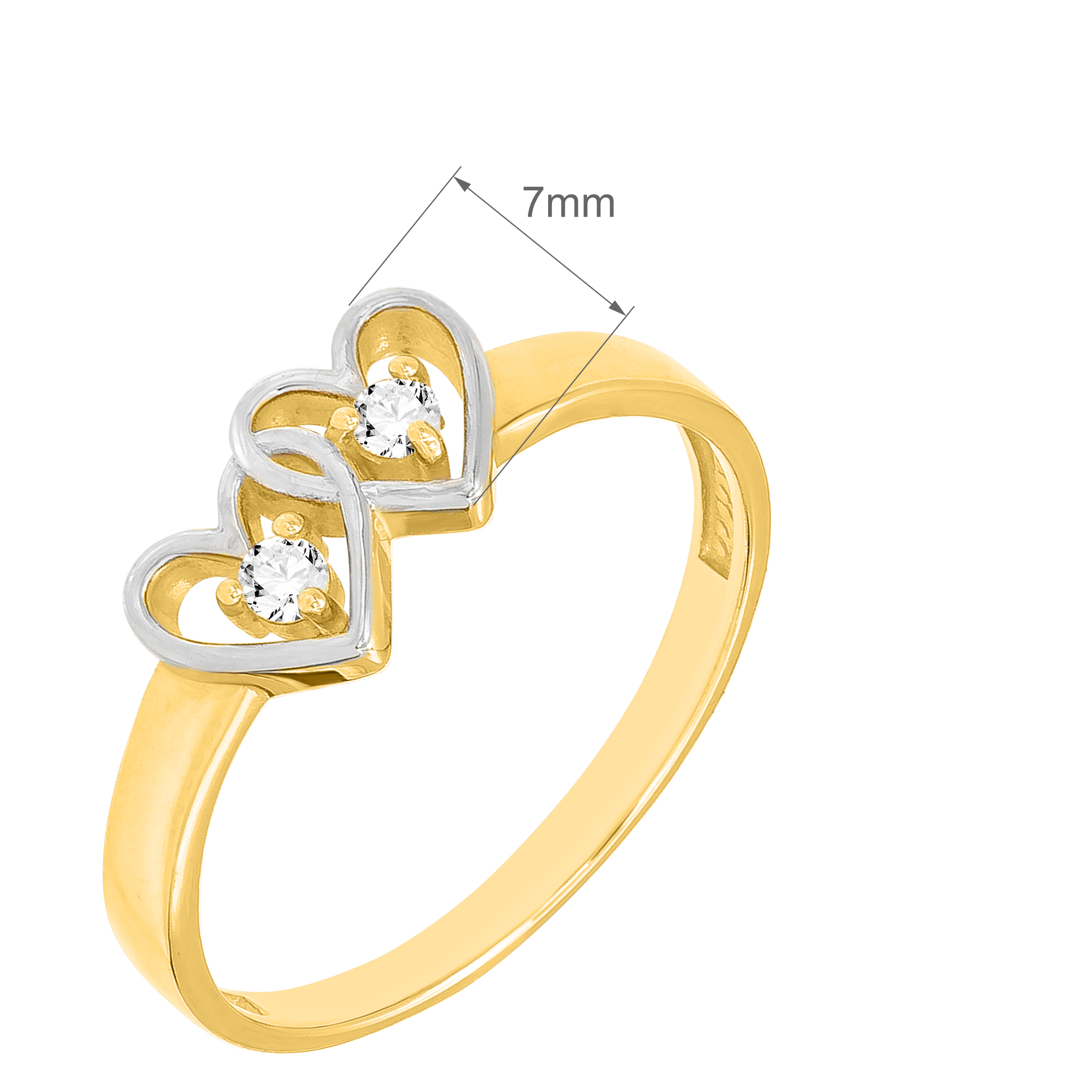 Złoty Pierścionek z Połączonymi ze Sobą Serduszkami i z Osadzonymi w Nich Białymi Cyrkoniami Żółte Białe Złoto R15 0.585