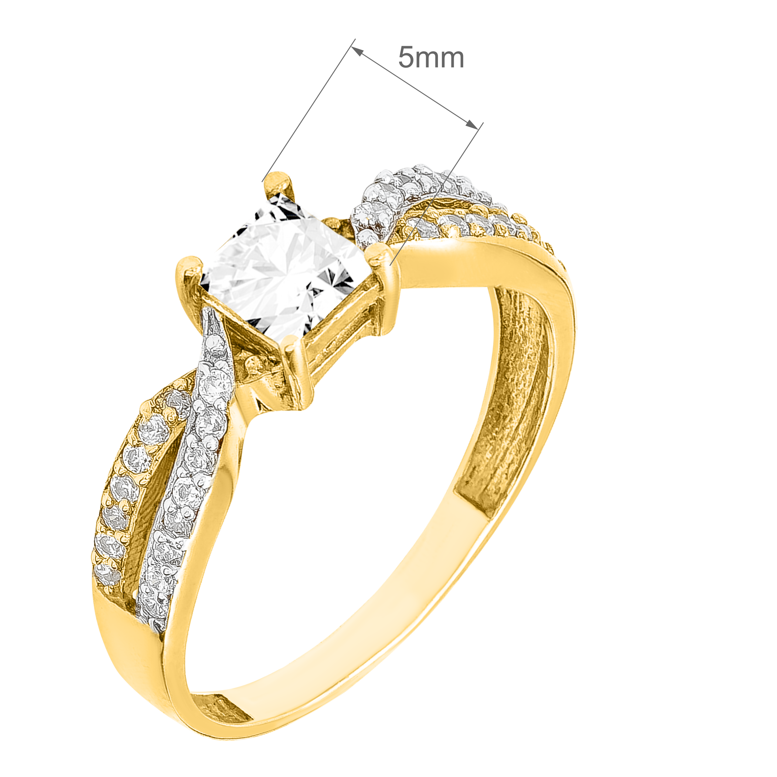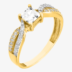 Złoty Pierścionek Zaręczynowy Podwójny z Białymi Cyrkoniami Żółte Złoto R16 0.333