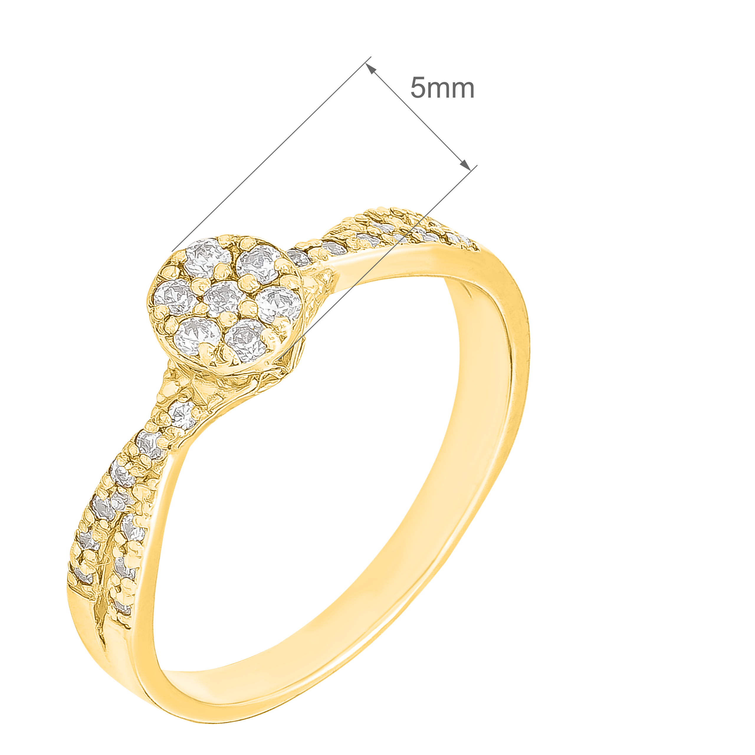 Złoty Pierścionek Zaręczynowy z Przeplatanym i Okrągłym Wzorem z Białymi Cyrkoniami R12 0.585