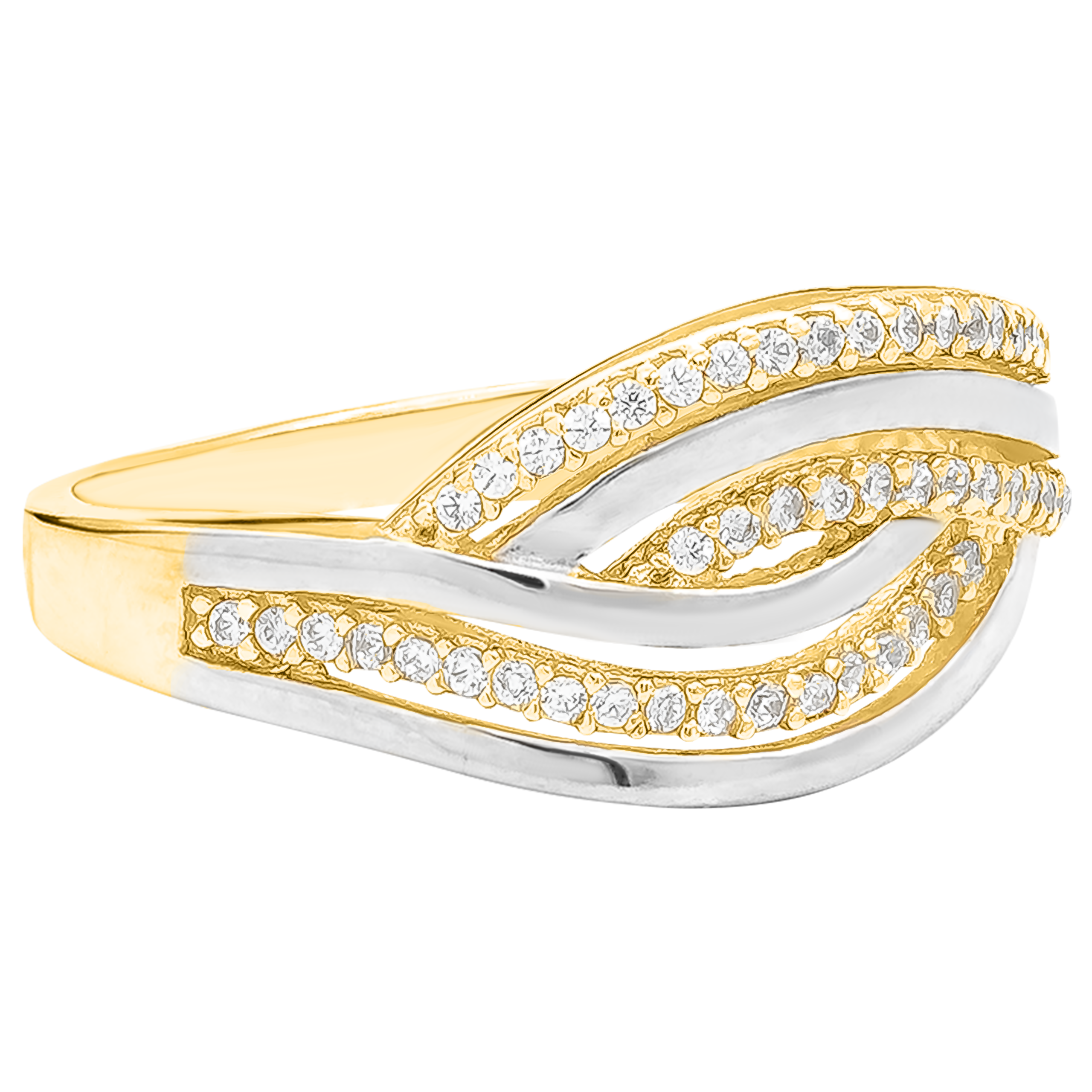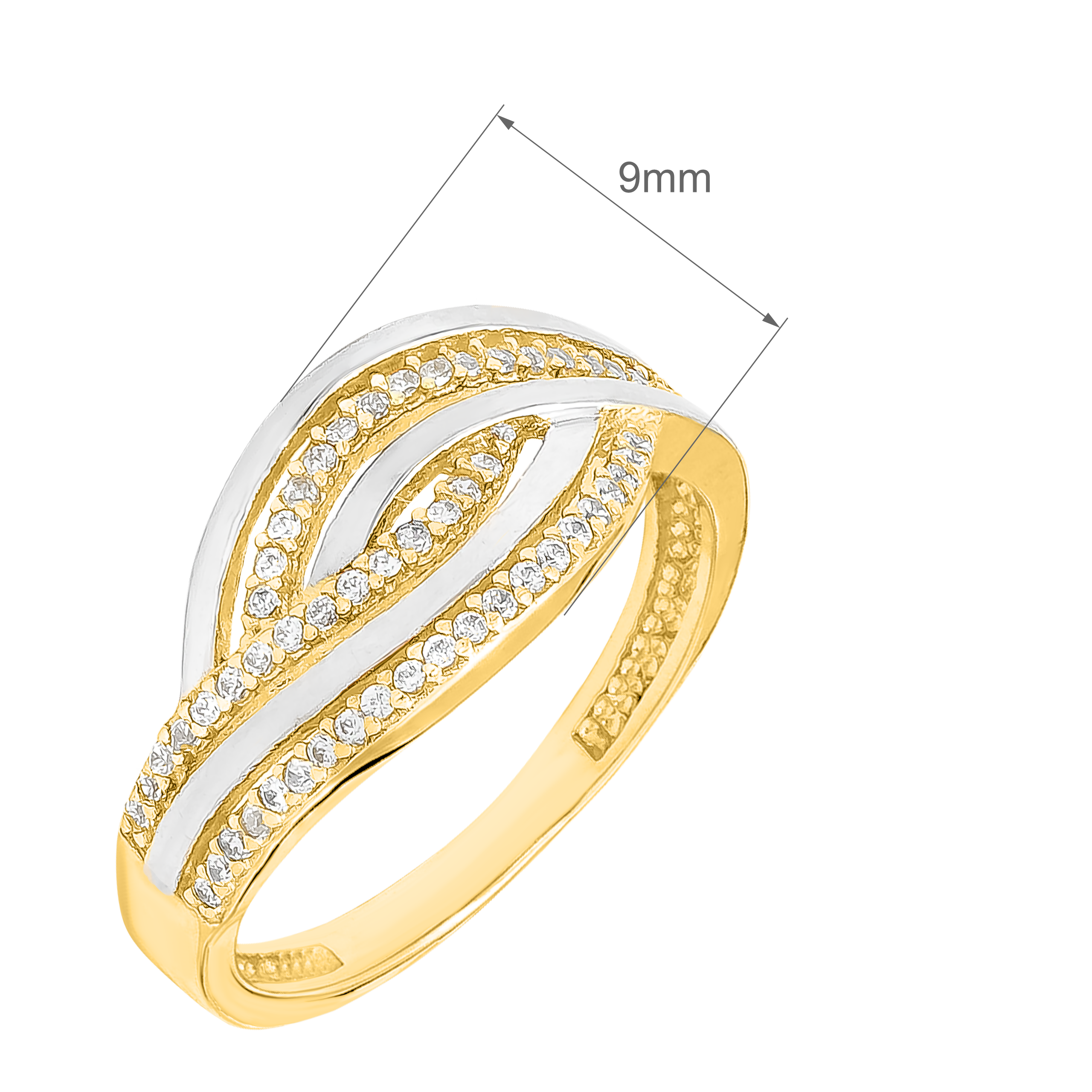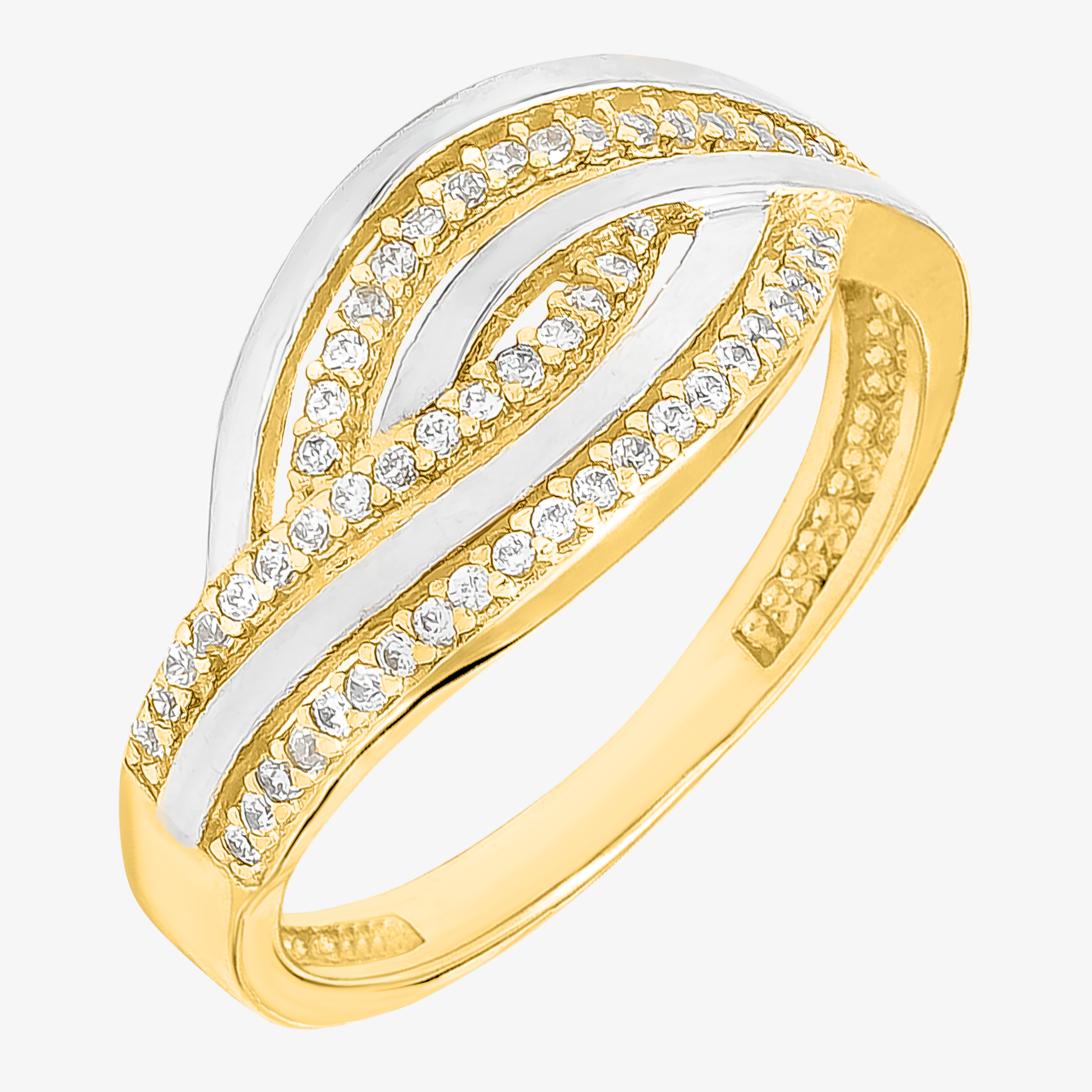 Złoty Pierścionek z Przeplatanym Wzorem i Osadzonymi Białymi Cyrkoniami Żółte i Białe Złoto R12 0.585