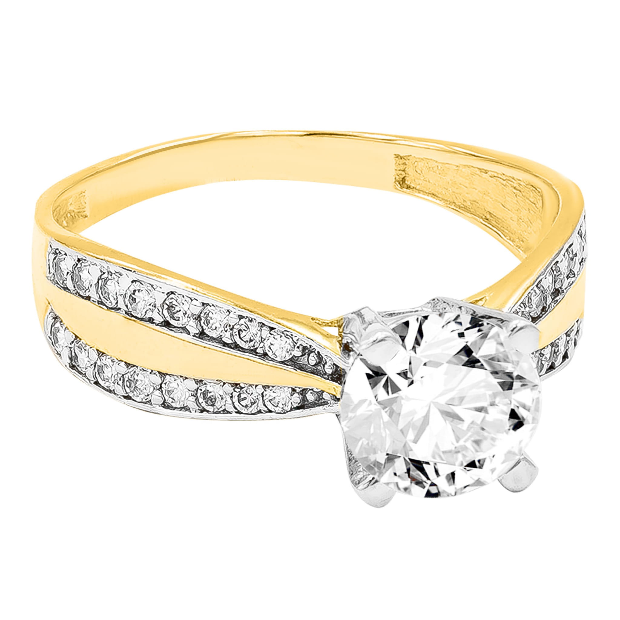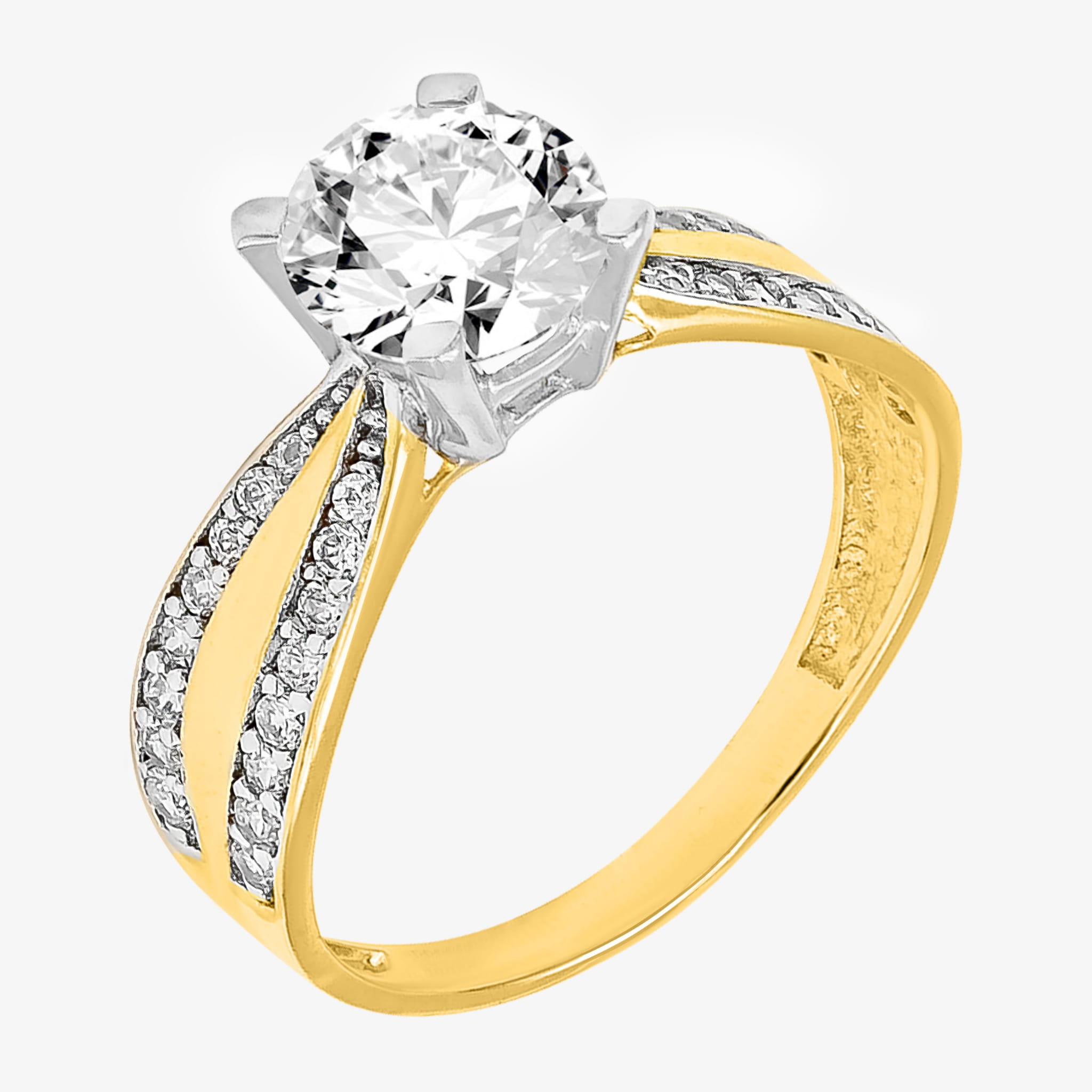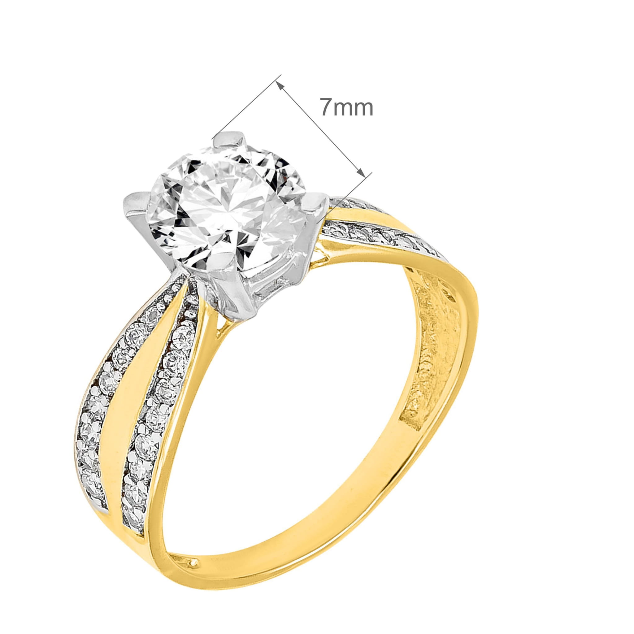 Złoty Pierścionek Zaręczynowy z Białymi Cyrkoniami R17 0.585