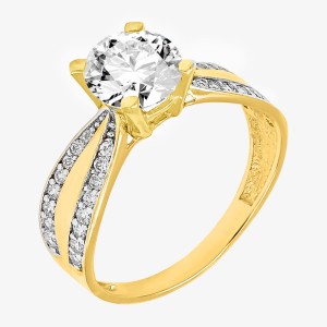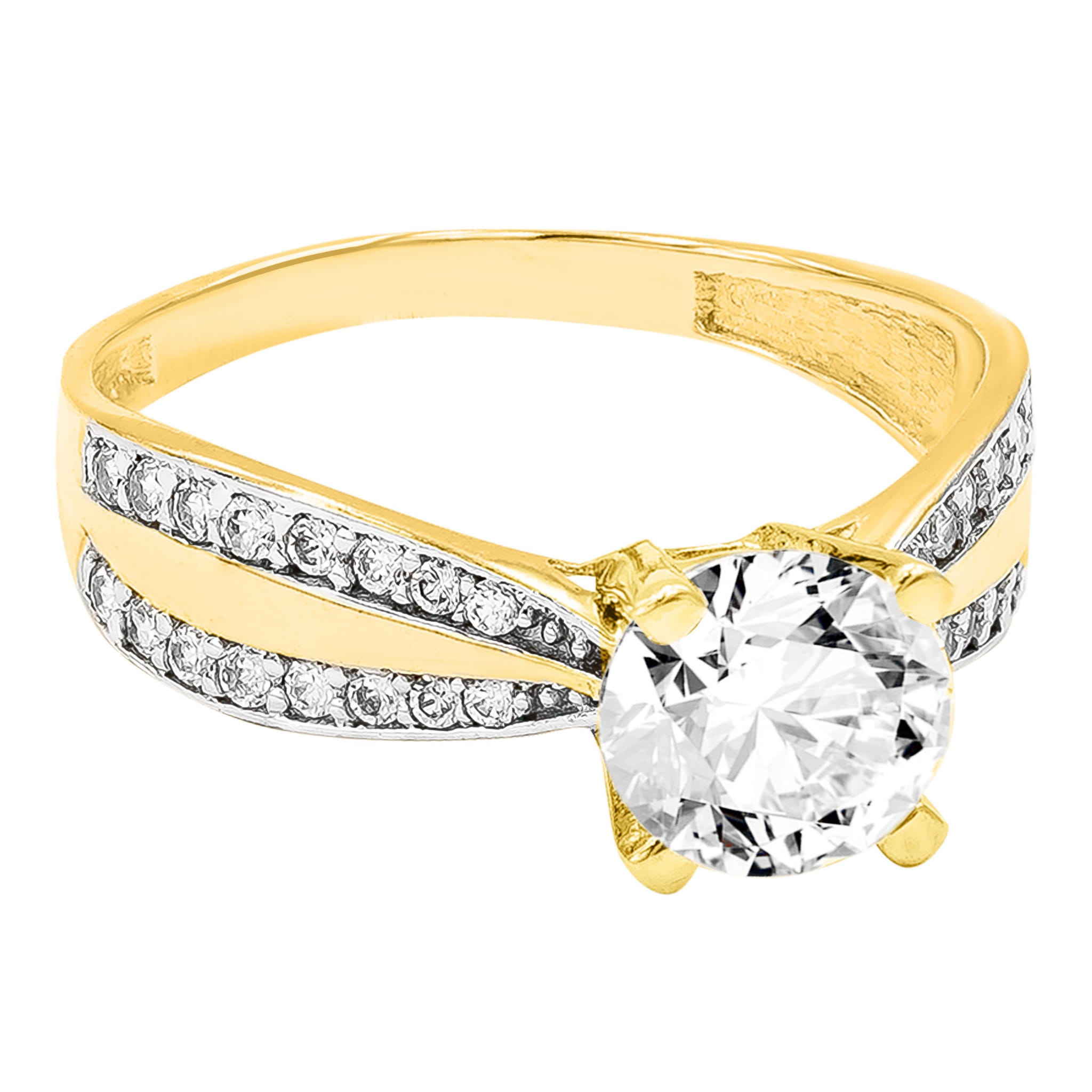 Złoty Pierścionek Zaręczynowy z Białymi Cyrkoniami 0.585
