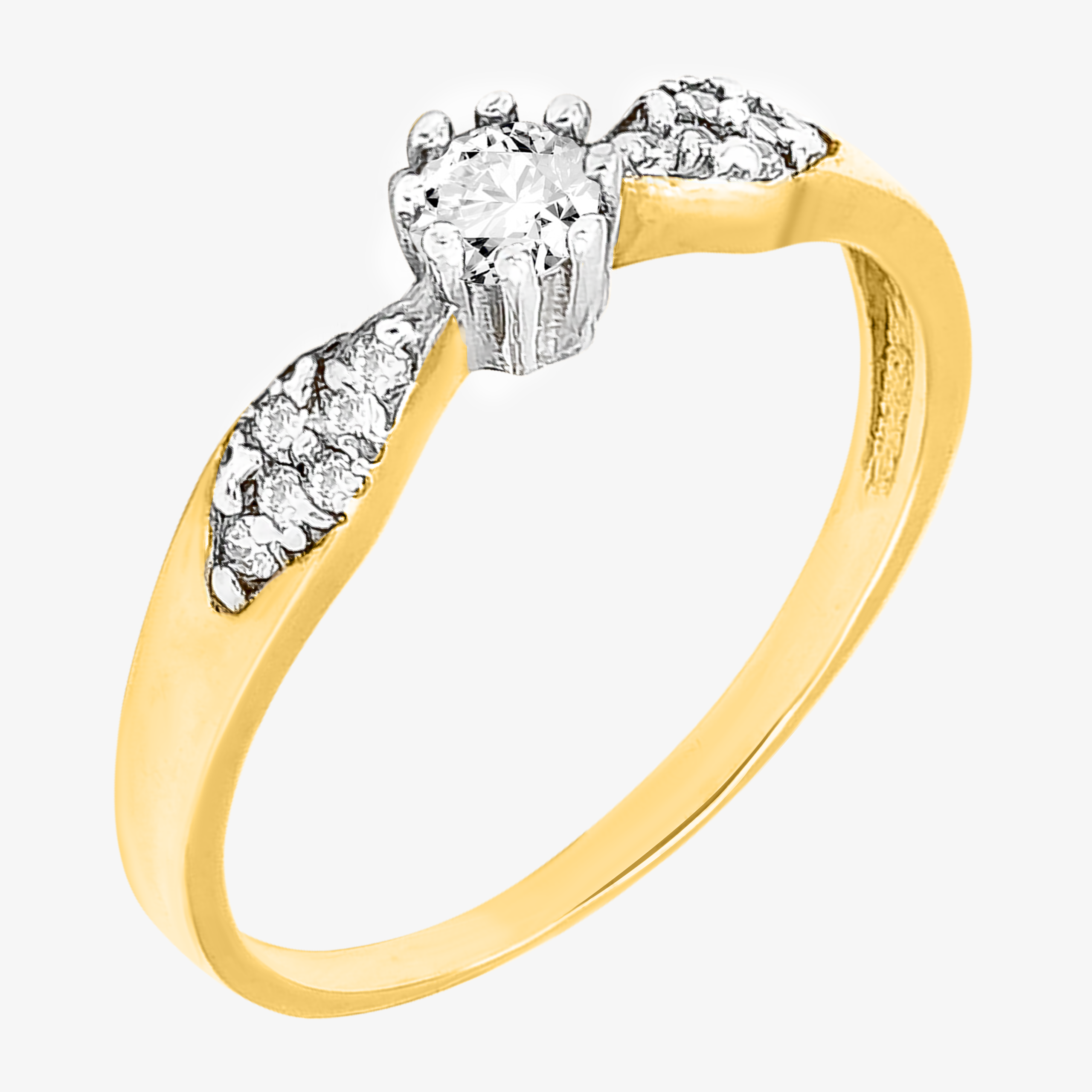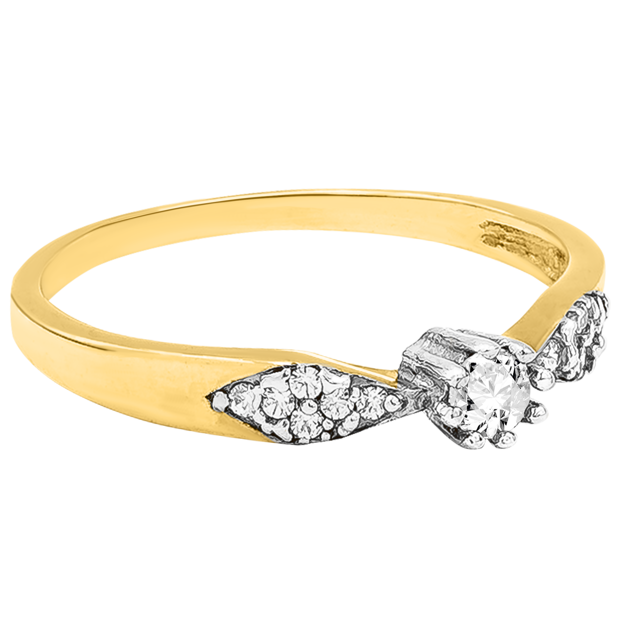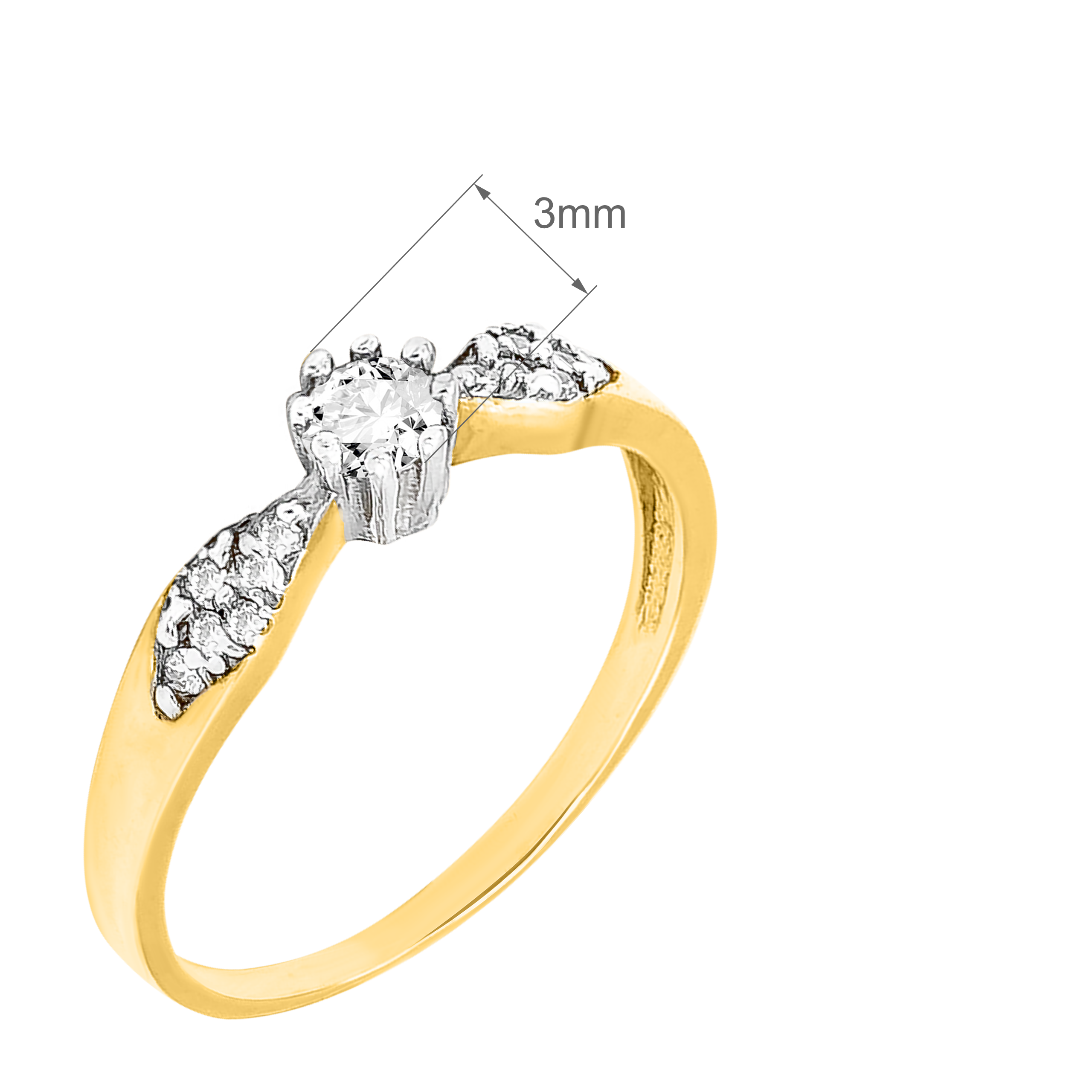 Złoty Pierścionek Zaręczynowy z Subtelnym Wzorem i Osadzonymi Białymi Cyrkoniami R10 0.585