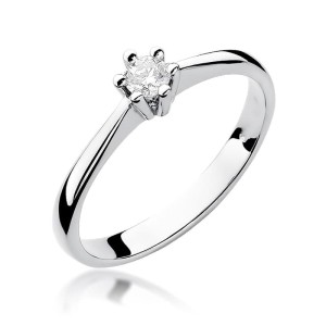 Harmonijny złoty pierścionek ozdobiony brylantem osadzonym w białym złocie. Klasyczny wzór i prosta forma sprawia iż doskonale nadaję się jako pierścionek zaręczynowy, który pokocha każda kobieta. Piękny diament idealnie podkreśla subtelność kobiecej dłoni.