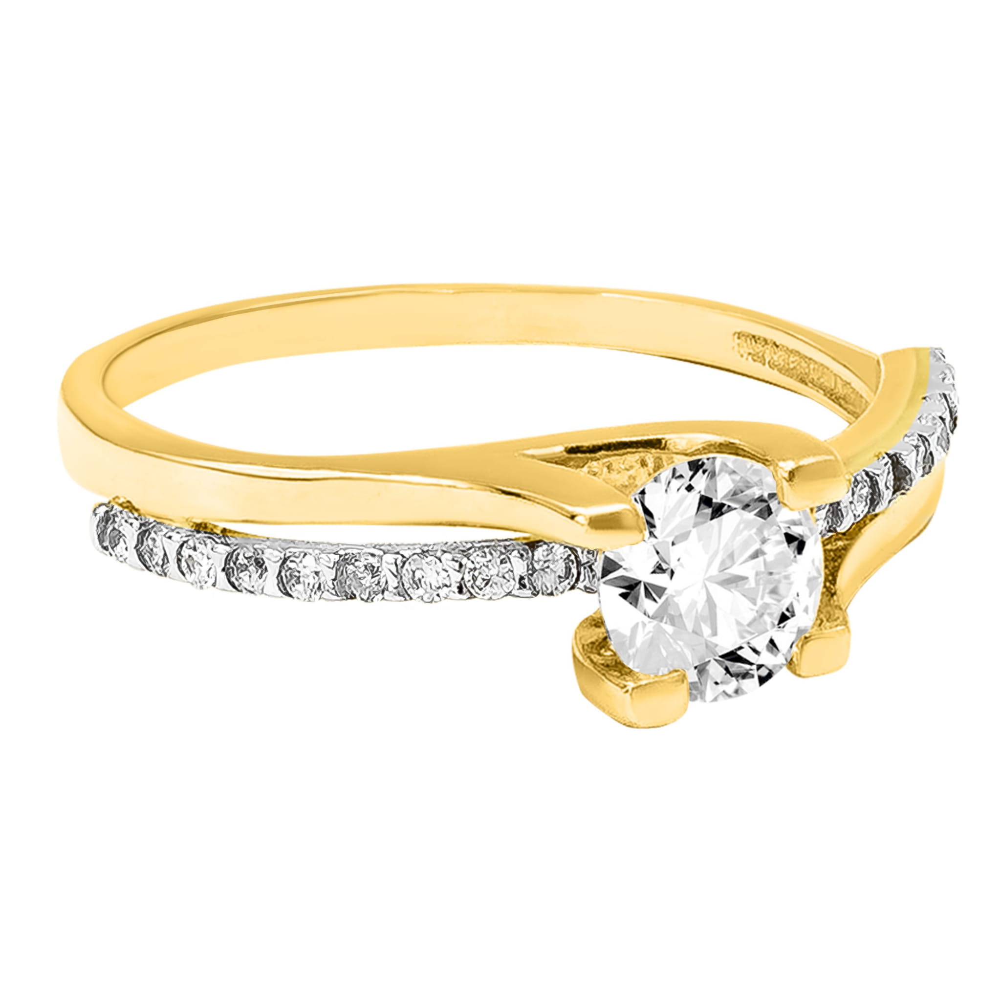Złoty Pierścionek Zaręczynowy z Osadzonymi Białymi Cyrkoniami o Różnej Wielkości R12 0.585