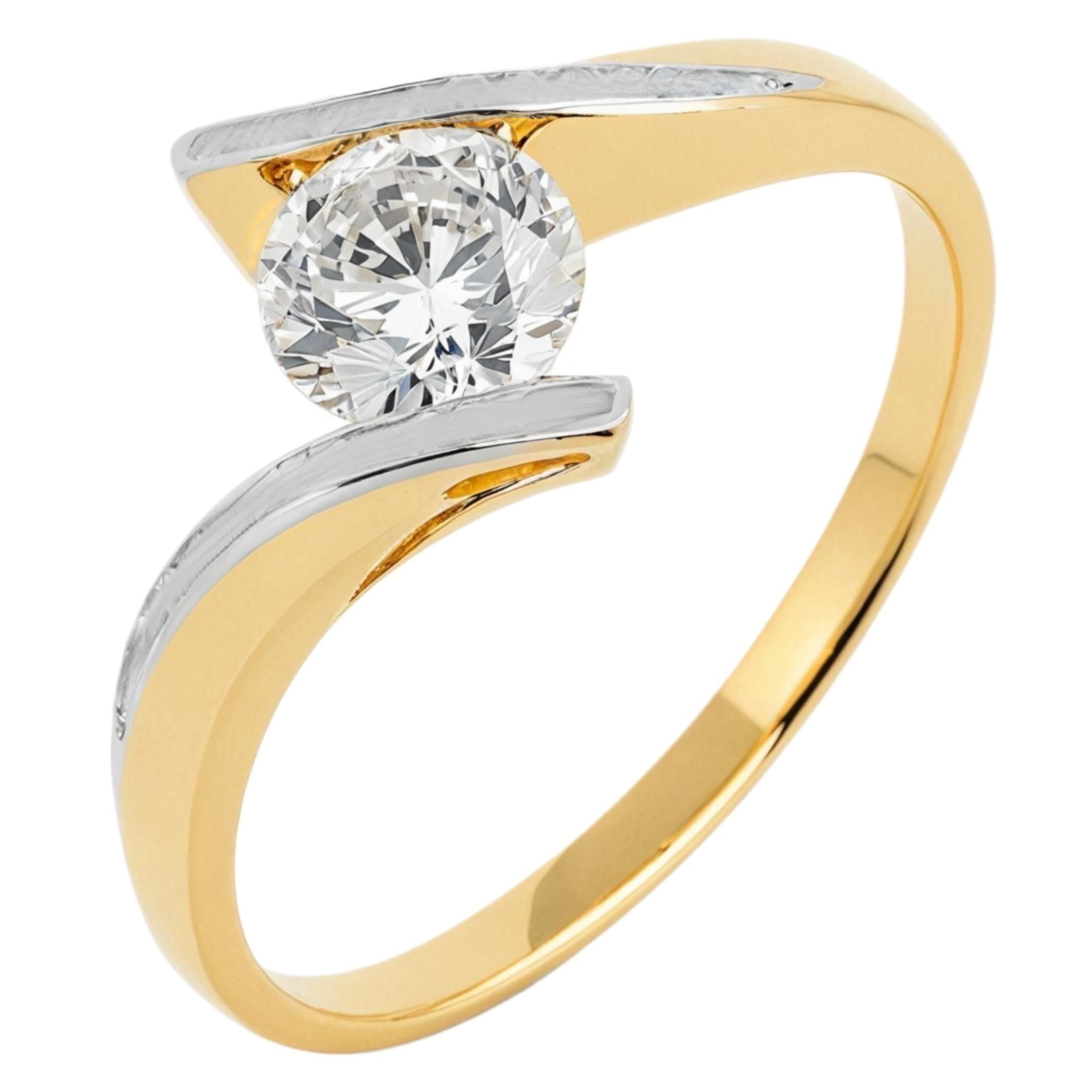 Subtelny Złoty Pierścionek Zaręczynowy Zaplatany z Osadzoną Białą Cyrkonią R14 0.585