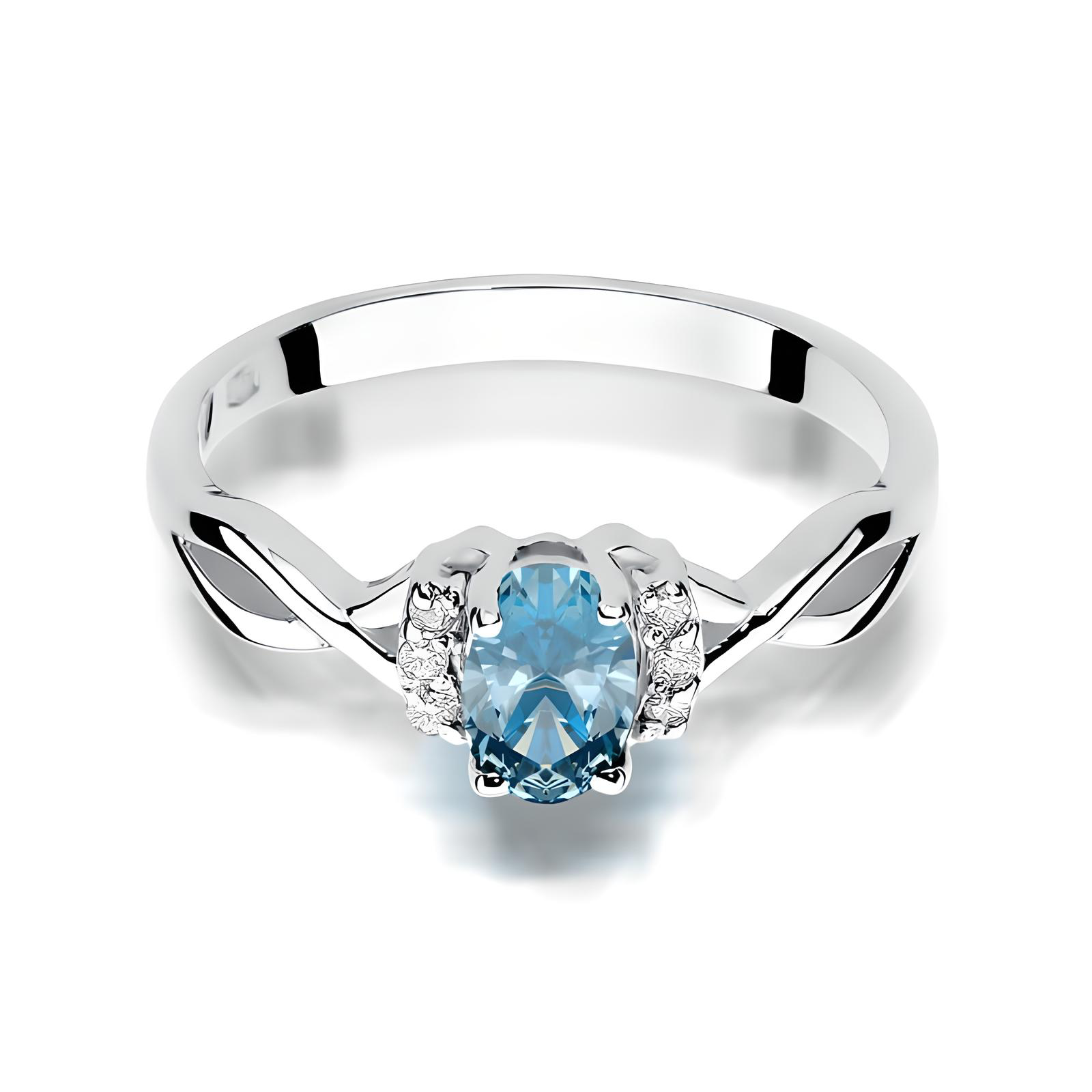 Złoty pierścionek zaręczynowy z topazem i brylantami białe złoto