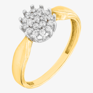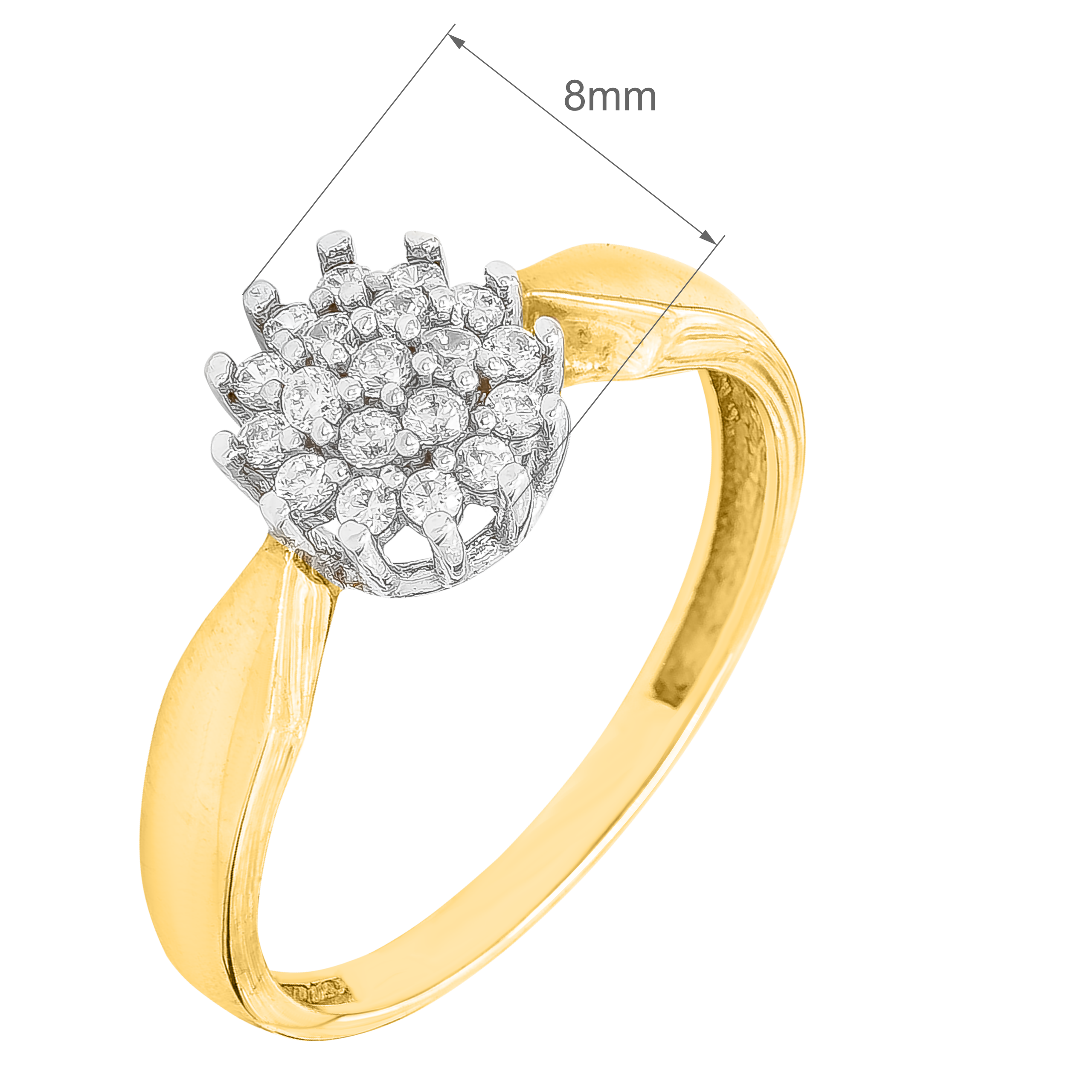 Złoty Pierścionek Zaręczynowy z Subtelnym Zdobieniem z Żółtego i Białego Złota z Białymi Cyrkoniami R16 0.333