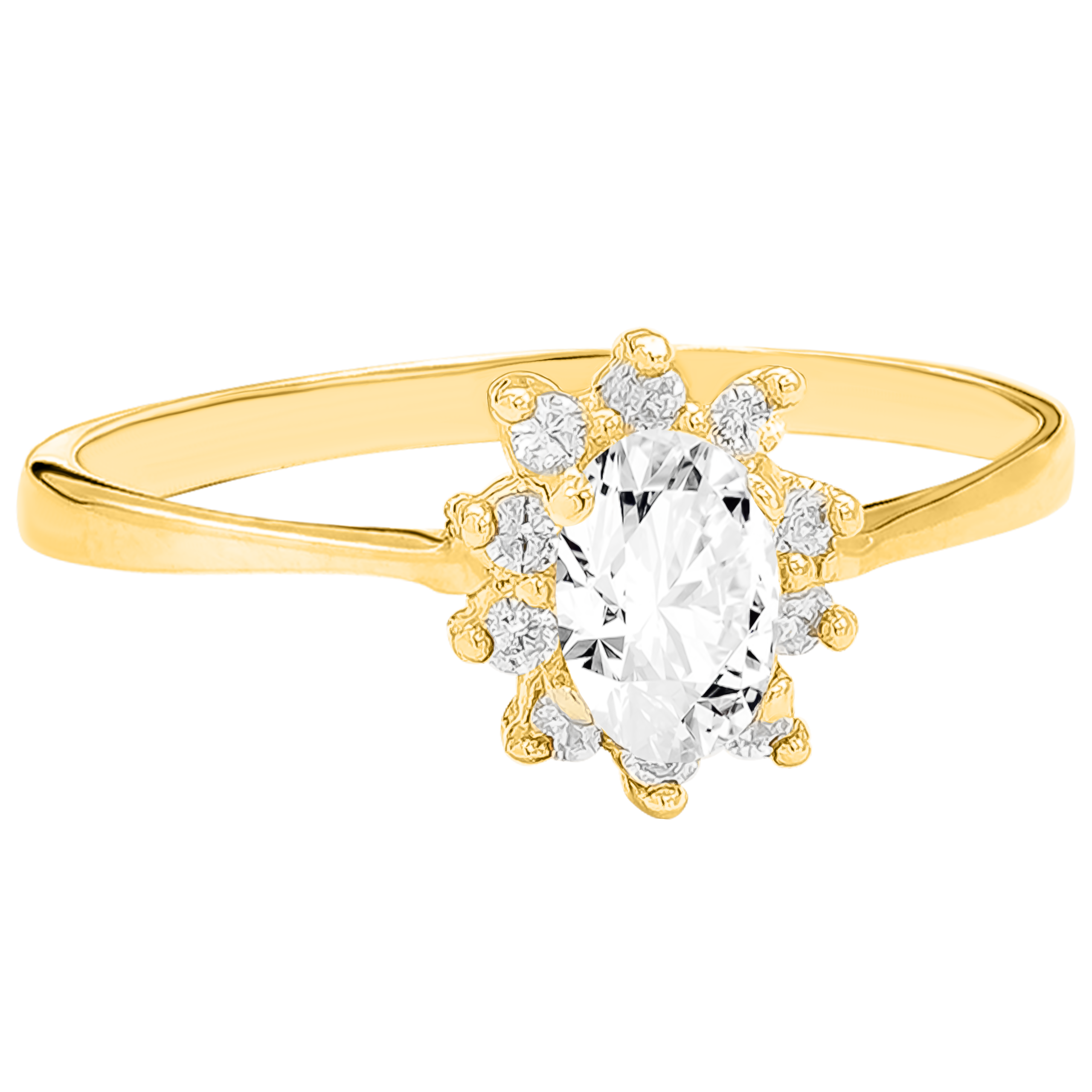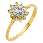 Złoty Pierścionek Zaręczynowy z Subtelnym Zdobieniem z Żółtego Złota z Białymi Cyrkoniami R16 0.585