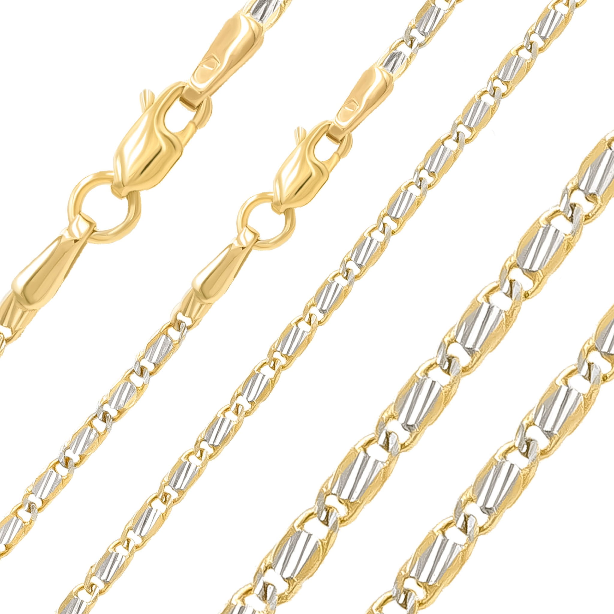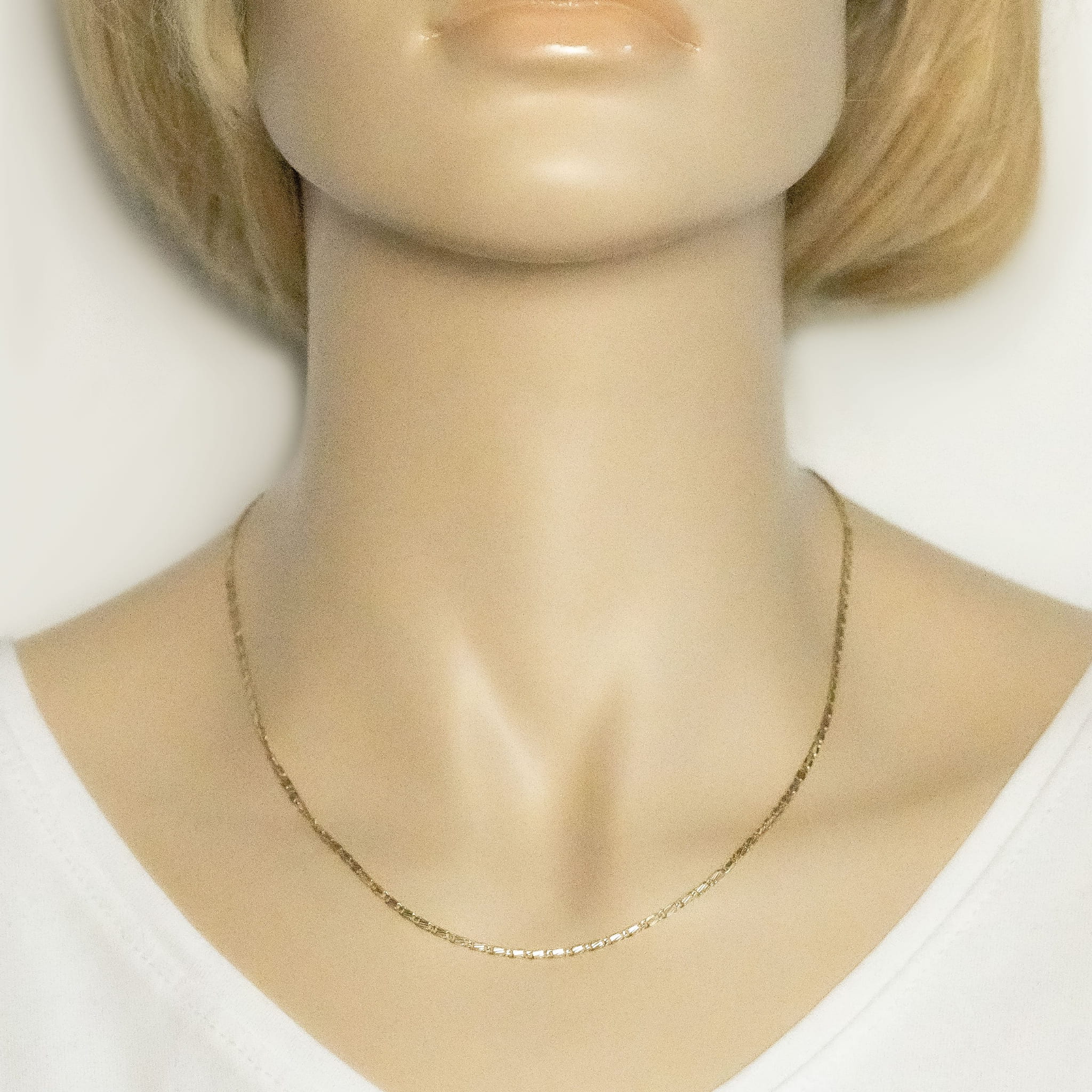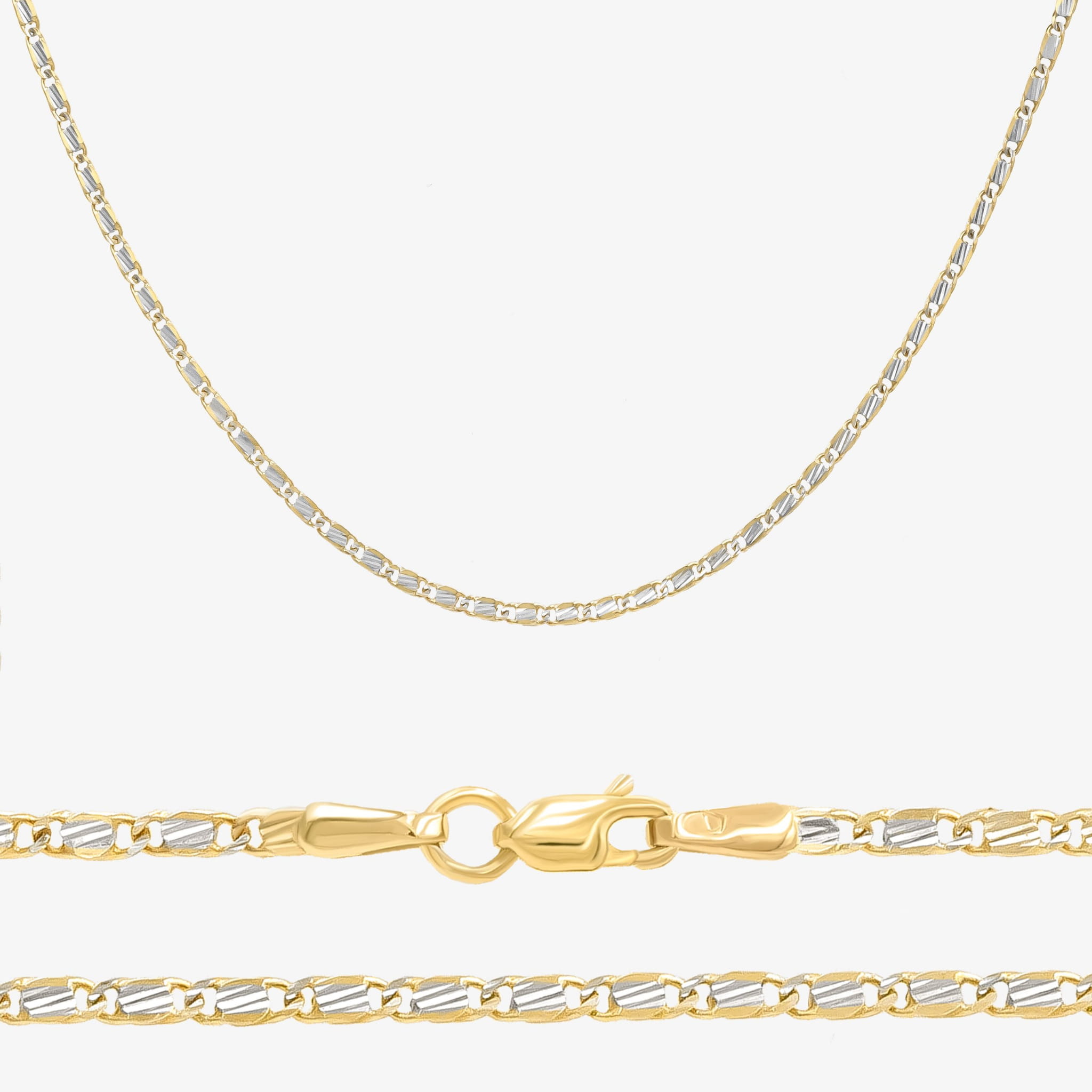Złoty, subtelny łańcuszek. Biżuteria o długości 45cm została wykonana z żółtego i białego złota o najwyższej jakości próbie 0.585. Noszona razem z Twoją stylizacją z pewnością doda Ci elegancji i blasku. Podarowana z okazji urodzin, Dnia Kobiet, rocznicy oraz wręczona bez okazji z pewnością wywoła wiele radości i szeroki uśmiech na twarzy.